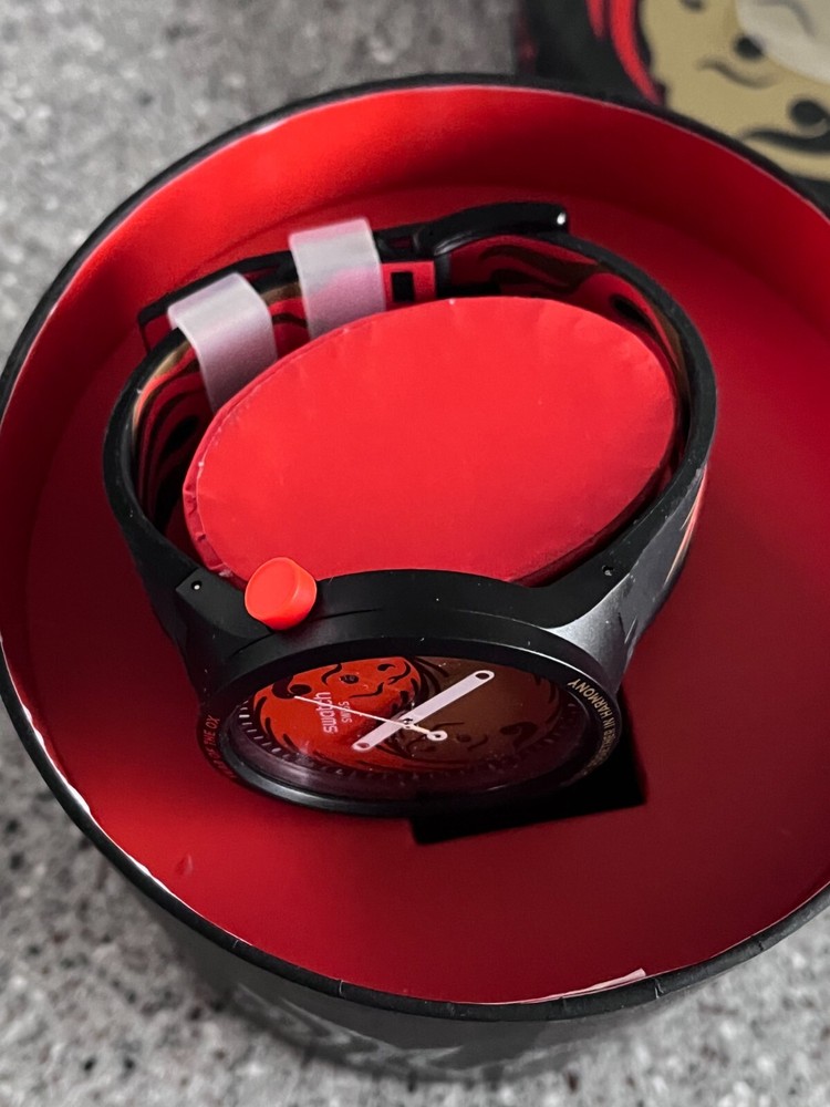 Celebrate the Year of the Ox with this limited edition Swatch watch. Featuring a stunning design inspired by the Chinese zodiac, this timepiece is a must-have for any watch collector. It has a battery installed and is running, it will be shipped with the battery. It has flames on the band and is UNWORN BRAND NEW. With its sleek black exterior and bold red accents, the Swatch Chinese New Year Ox Rocks. Watch is sure to make a statement wherever you wear it. The watch is made by Swatch, a trusted brand in the industry, and features a variety of impressive aspects including a durable construction and reliable performance. (SO27Z109) is a must-have celebratory piece for the Chinese New Year and it comes right on time. Warmed up by the fiery black, red and gold-colored strap, the dial represents the perfectly harmonious Ox in a Ying and Yang shape, adorned with two black crystals. This has a larger 47mm face