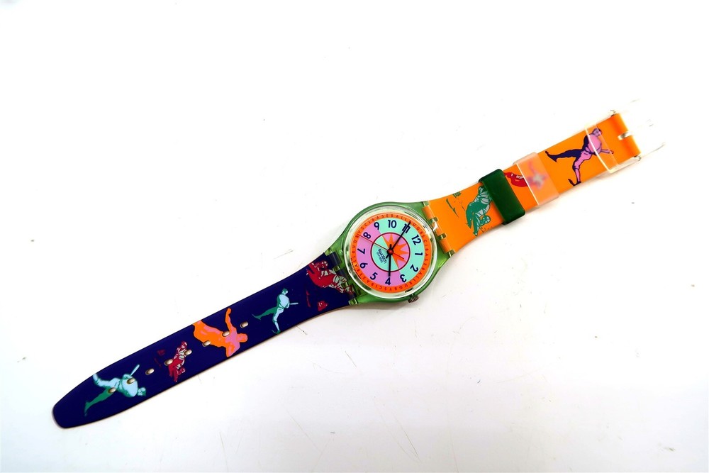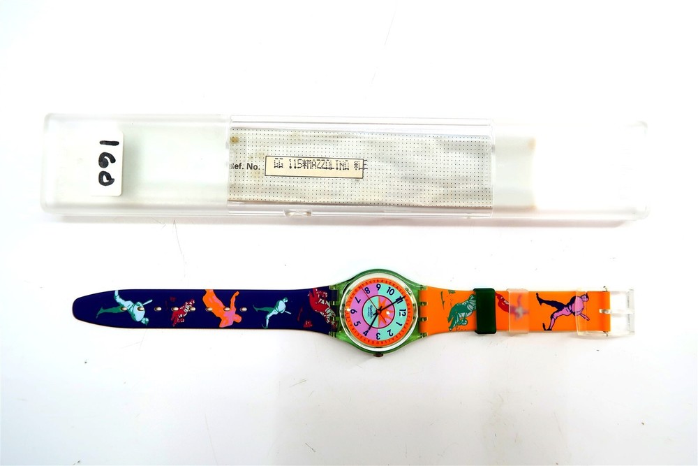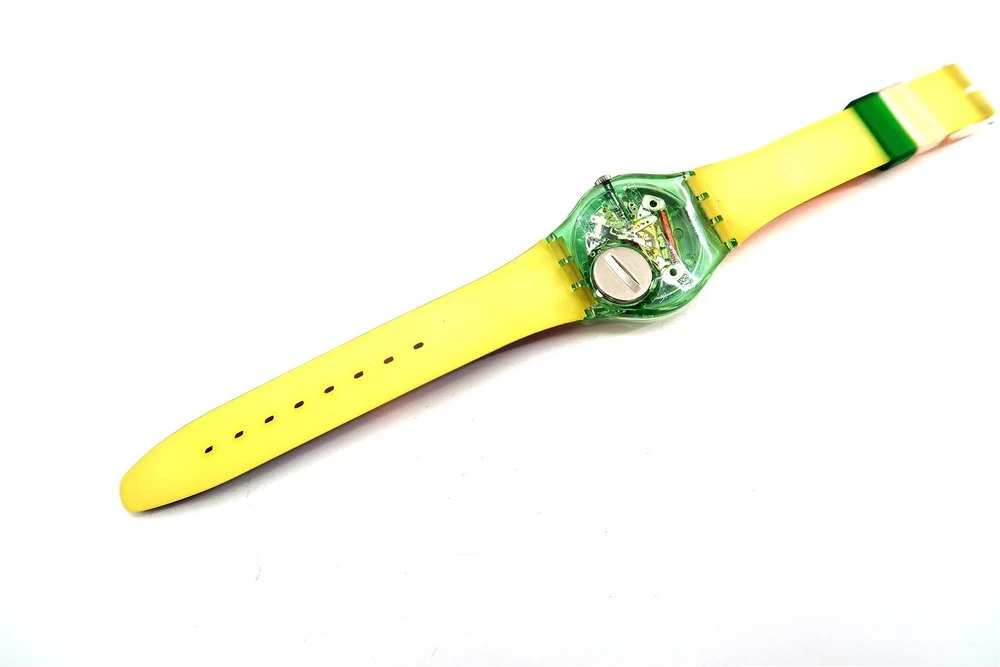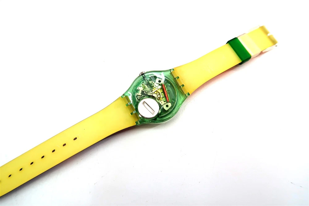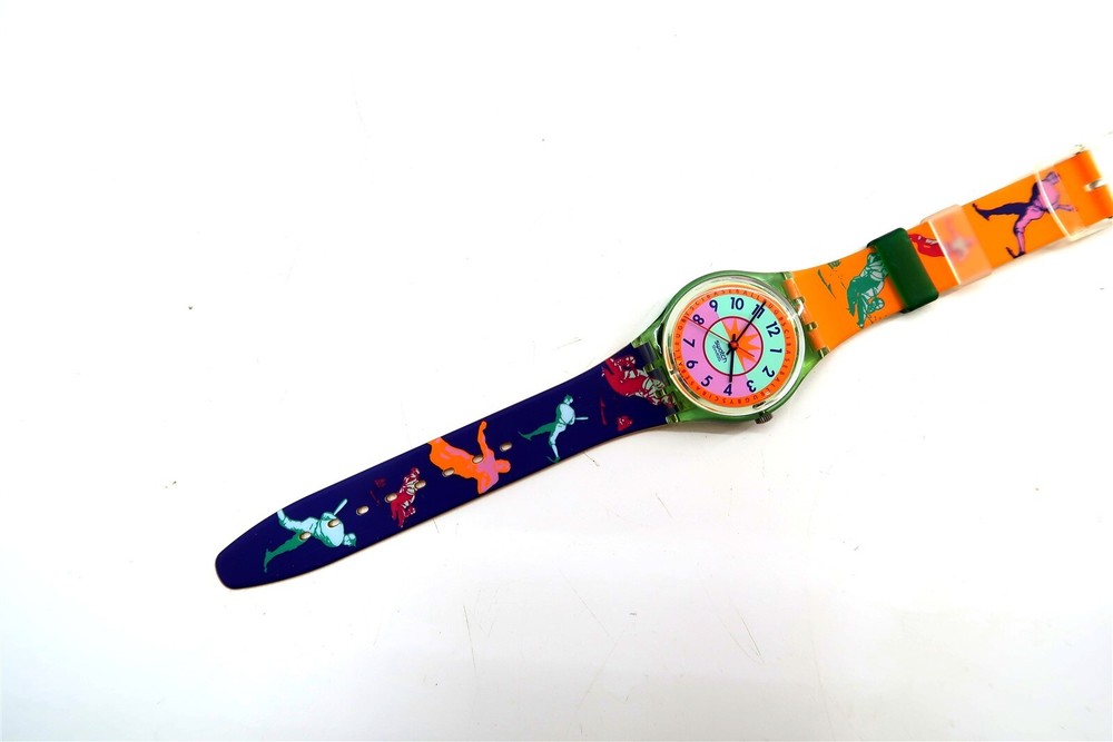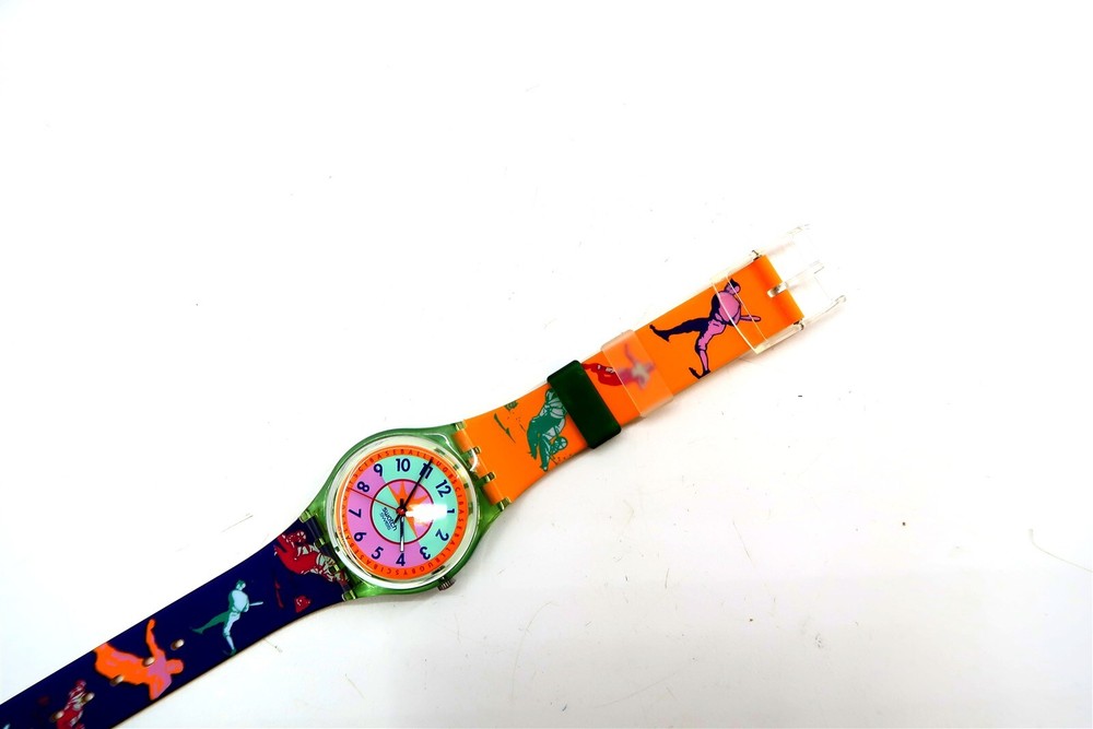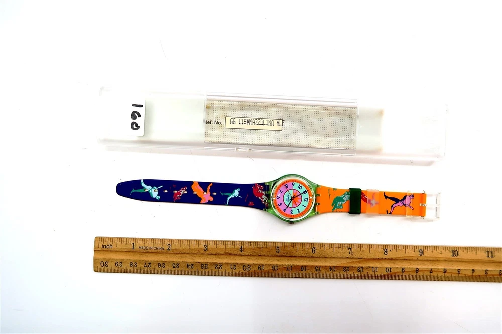 NEW Swatch Watch CURLING GG117 with Case 1992 NOS Gents VINTAGE This eBay listing is for a New Old Stock classic SWATCH WATCH that comes as you see pictured in the listing and noted above. This watch is brand new and never used before and comes with the original case. If you collect classic Swatch Watches, then please check out my other listings in my ebay store for many more great Swatches!! I just picked up close to 800 NOS Swatches from a local auction where I'm told the consignor had one of the largest Swatch watch collection in the United States. This was their 3rd and final auction of Swatches. In total, I purchased close to 1500+ Swatches!! Many of the watches are Special Editions, Limited Editions, Boxed Sets, Scarce and rare models plus other vintage Swatches as well. I will remove all of the old Swatch batteries and will replaced them with brand new batteries to verify that they are all are all in good working condition unless noted below. Please note that vintage and retro Swatches are on the smaller size compared to modern style watches. Most standard Gents (mens) watches have a 33mm-34mm case. I will try to include a picture with each new listing showing the watch next to a standard ruler so that you can see the true size of this collectible Swatch watch. Swatch name : CURLING Model : GG117 New Battery : Yes (due to age, the original battery was removed with a new battery installed) Features/Notes : Works Great! Circa 1992. PLEASE NOTE - the paperwork included with this Swatch is period correct for this make and model but it doesn't have the correct model number written on the paperwork. Seller Location Reference - Box 64 BID IN CONFIDENCE – CHECK MY FEEDBACK! My goal is your satisfaction. I leave positive feedback right after the payment is received for all orders!! If you plan to leave anything less than positive feedback and 5 stars - please let me know so that I can work out any problems that you may have. I aim to please!! SHIPPING & HANDLING FOR US BIDDERS We ship ASAP upon payment as noted above within 1 business day 99% of the time!! We normally pack up your new treasures 2 - 3 times a day and ship using USPS and Fedex Ground so that you get your items in a timely fashion. As always - there is no charge for local pickup on any of my items!! SHIPPING AND HANDLING FOR INTERNATIONAL BIDDERS Import duties, taxes and charges are not included in the item price or shipping charges. These charges are the buyer’s responsibility. Please check with your country’s customs office to determine what these additional costs will be prior to bidding/buying.” THANK YOU AND HAVE A WONDERFUL DAY!! Powered by SixBit's eCommerce Solution