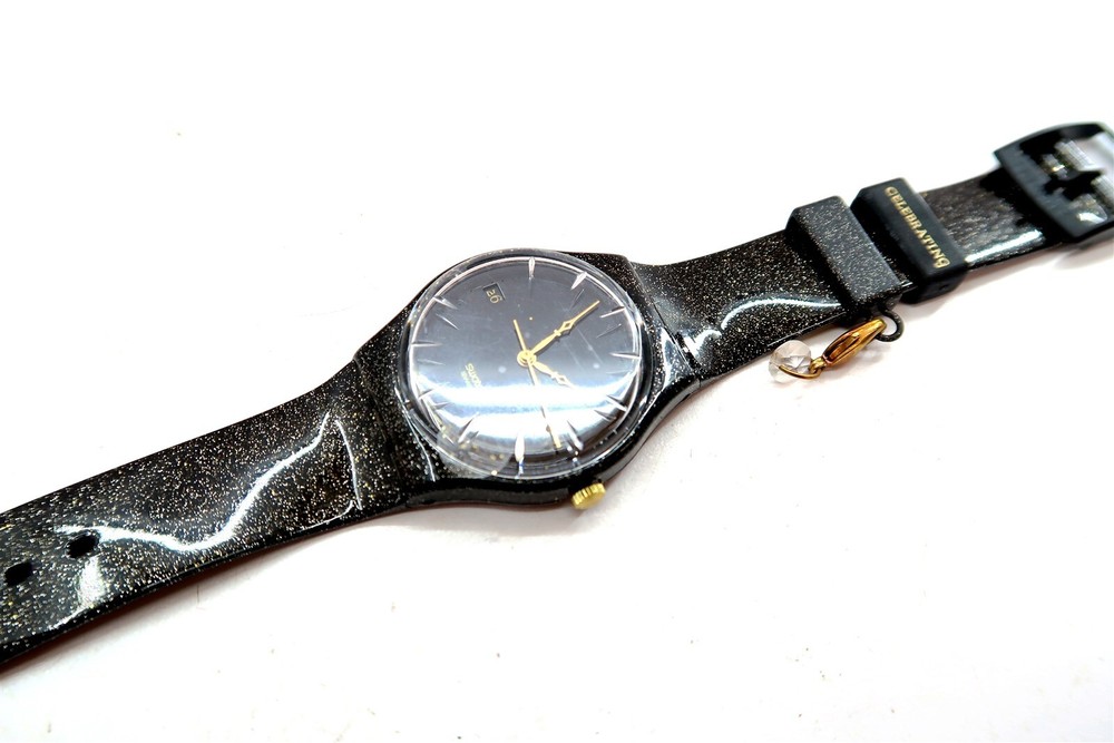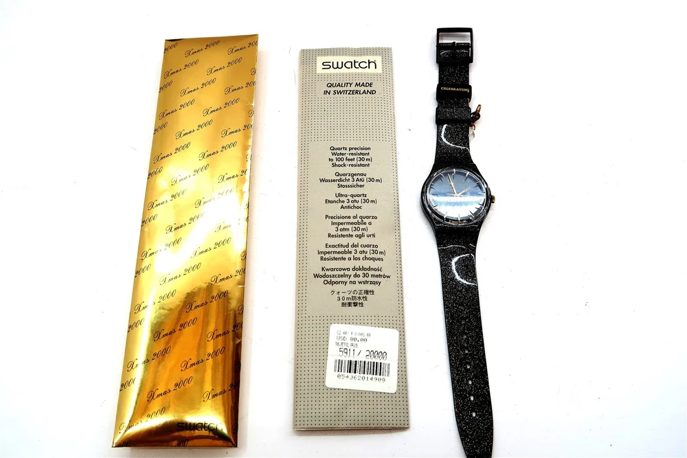 Swatch Watch Christmas WORLD PARTY GZ407 New Limited Edition #5870 Set w/ Charms This eBay listing is for a New Old Stock classic SWATCH WATCH that comes as you see pictured in the listing and noted above. This watch is brand new and never used before and comes with the original case and paperwork. If you collect classic Swatch Watches, then please check out my other listings in my ebay store for many more great Swatches!! I just picked up close to 800 NOS Swatches from a local auction where I'm told the consignor had one of the largest Swatch watch collection in the United States. This was their 3rd and final auction of Swatches. In total, I purchased close to 1500+ Swatches!! Many of the watches are Special Editions, Limited Editions, Boxed Sets, Scarce and rare models plus other vintage Swatches as well. I will remove all of the old Swatch batteries and will replaced them with brand new batteries to verify that they are all are all in good working condition unless noted below. Please note that vintage and retro Swatches are on the smaller size compared to modern style watches. Most standard Gents (mens) watches have a 33mm-34mm case. I will try to include a picture with each new listing showing the watch next to a standard ruler so that you can see the true size of this collectible Swatch watch. Swatch name : WORLD PARTY Model : GZ407 New Battery : Yes (due to age, the original battery was removed with a new battery installed) Features/Notes : Works Great! Circa 2000. Limited Edition Set number 5870 out of 20000 made. Seller Location Reference - Box 28 BID IN CONFIDENCE – CHECK MY FEEDBACK! My goal is your satisfaction. I leave positive feedback right after the payment is received for all orders!! If you plan to leave anything less than positive feedback and 5 stars - please let me know so that I can work out any problems that you may have. I aim to please!! SHIPPING & HANDLING FOR US BIDDERS We ship ASAP upon payment as noted above within 1 business day 99% of the time!! We normally pack up your new treasures 2 - 3 times a day and ship using USPS and Fedex Ground so that you get your items in a timely fashion. As always - there is no charge for local pickup on any of my items!! SHIPPING AND HANDLING FOR INTERNATIONAL BIDDERS Import duties, taxes and charges are not included in the item price or shipping charges. These charges are the buyer’s responsibility. Please check with your country’s customs office to determine what these additional costs will be prior to bidding/buying.” THANK YOU AND HAVE A WONDERFUL DAY!! Powered by SixBit's eCommerce Solution