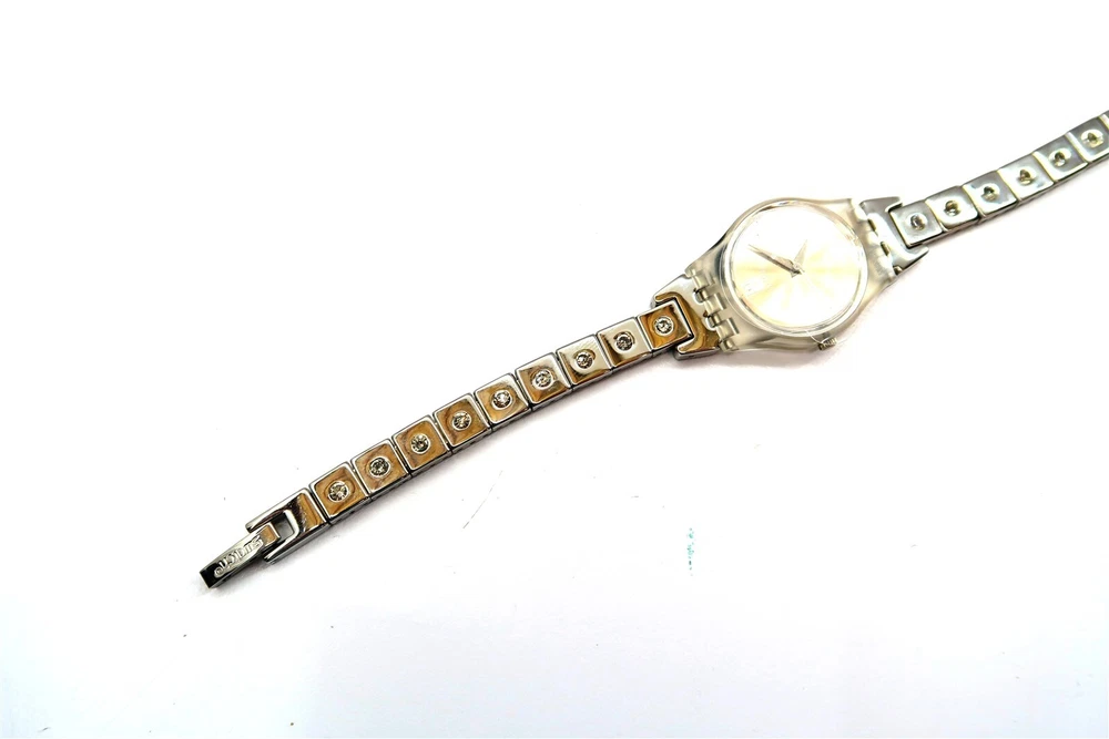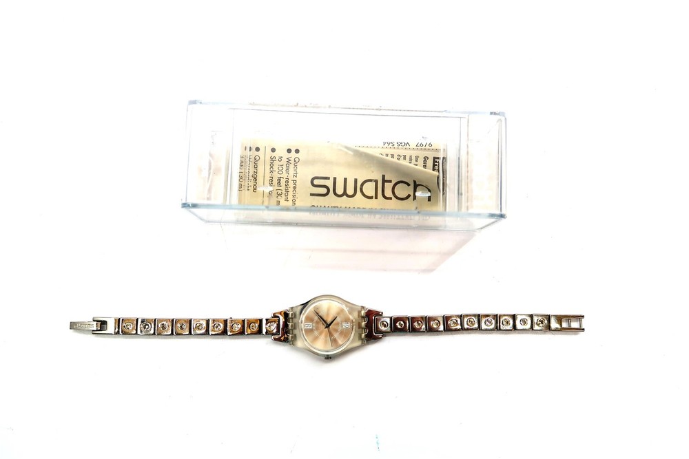 NEW Swatch Womans Watch ECLAT DE STAR LK191P w/ Case and Papers 2001 Ladies This eBay listing is for a New Old Stock classic SWATCH WATCH that comes as you see pictured in the listing and noted above. This watch is brand new and never used before and comes with the original case and paperwork. If you collect classic Swatch Watches, then please check out my other listings in my ebay store for many more great Swatches!! I just picked up close to 800 NOS Swatches from a local auction where I'm told the consignor had one of the largest Swatch watch collection in the United States. This was their 3rd and final auction of Swatches. In total, I purchased close to 1500+ Swatches!! Many of the watches are Special Editions, Limited Editions, Boxed Sets, Scarce and rare models plus other vintage Swatches as well. I will remove all of the old Swatch batteries and will replaced them with brand new batteries to verify that they are all are all in good working condition unless noted below. Please note that vintage and retro Swatches are on the smaller size compared to modern style watches. Most standard Gents (mens) watches have a 33mm-34mm case. I will try to include a picture with each new listing showing the watch next to a standard ruler so that you can see the true size of this collectible Swatch watch. Swatch name : ECLAT DE STAR Model : LK191P New Battery : Yes (due to age, the original battery was removed with a new battery installed) Features/Notes : Works Great! Circa 2001. Seller Location Reference - Box 5 BID IN CONFIDENCE – CHECK MY FEEDBACK! My goal is your satisfaction. I leave positive feedback right after the payment is received for all orders!! If you plan to leave anything less than positive feedback and 5 stars - please let me know so that I can work out any problems that you may have. I aim to please!! SHIPPING & HANDLING FOR US BIDDERS We ship ASAP upon payment as noted above within 1 business day 99% of the time!! We normally pack up your new treasures 2 - 3 times a day and ship using USPS and Fedex Ground so that you get your items in a timely fashion. As always - there is no charge for local pickup on any of my items!! SHIPPING AND HANDLING FOR INTERNATIONAL BIDDERS Import duties, taxes and charges are not included in the item price or shipping charges. These charges are the buyer’s responsibility. Please check with your country’s customs office to determine what these additional costs will be prior to bidding/buying.” THANK YOU AND HAVE A WONDERFUL DAY!! Powered by SixBit's eCommerce Solution