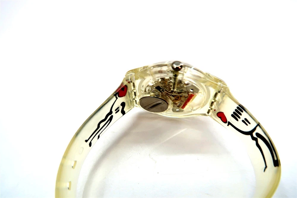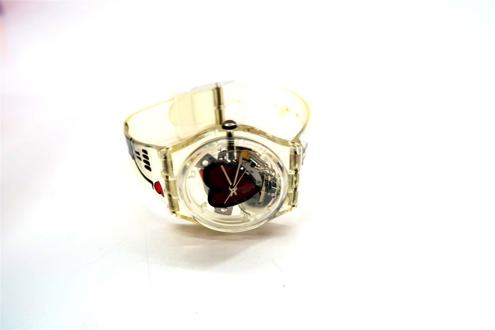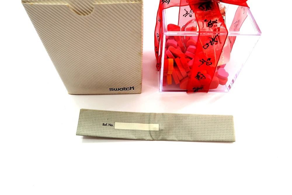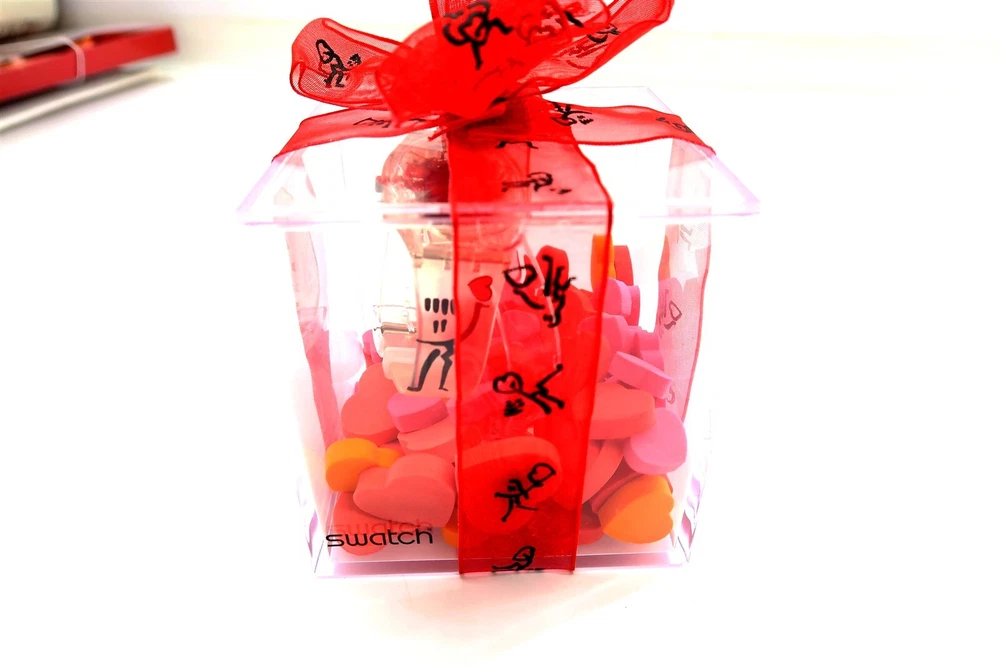 Swatch Watch CUPID'S BOW GK371 New NOS Special Edition Box Set 2002 This eBay listing is for a New Old Stock classic SWATCH WATCH that comes as you see pictured in the listing and noted above. This watch is brand new and never used before and comes with the original case and paperwork. If you collect classic Swatch Watches, then please check out my other listings in my ebay store for many more great Swatches!! I just picked up close to 800 NOS Swatches from a local auction where I'm told the consignor had one of the largest Swatch watch collection in the United States. This was their 3rd and final auction of Swatches. In total, I purchased close to 1500+ Swatches!! Many of the watches are Special Editions, Limited Editions, Boxed Sets, Scarce and rare models plus other vintage Swatches as well. I will remove all of the old Swatch batteries and will replaced them with brand new batteries to verify that they are all are all in good working condition unless noted below. Please note that vintage and retro Swatches are on the smaller size compared to modern style watches. Most standard Gents (mens) watches have a 33mm-34mm case. I will try to include a picture with each new listing showing the watch next to a standard ruler so that you can see the true size of this collectible Swatch watch. Swatch name : CUPID'S BOW Model : GK371 New Battery : Yes (due to age, the original battery was removed with a new battery installed) Features/Notes : Works Great! Circa 2002. Special Edition Boxed Set Includes outer box (foxing spots on the inside of box), watch, paperwork, clear case full of foam hearts and bow for outside of the box. Seller Location Reference - Box 24 BID IN CONFIDENCE – CHECK MY FEEDBACK! My goal is your satisfaction. I leave positive feedback right after the payment is received for all orders!! If you plan to leave anything less than positive feedback and 5 stars - please let me know so that I can work out any problems that you may have. I aim to please!! SHIPPING & HANDLING FOR US BIDDERS We ship ASAP upon payment as noted above within 1 business day 99% of the time!! We normally pack up your new treasures 2 - 3 times a day and ship using USPS and Fedex Ground so that you get your items in a timely fashion. As always - there is no charge for local pickup on any of my items!! SHIPPING AND HANDLING FOR INTERNATIONAL BIDDERS Import duties, taxes and charges are not included in the item price or shipping charges. These charges are the buyer’s responsibility. Please check with your country’s customs office to determine what these additional costs will be prior to bidding/buying.” THANK YOU AND HAVE A WONDERFUL DAY!! Powered by SixBit's eCommerce Solution
