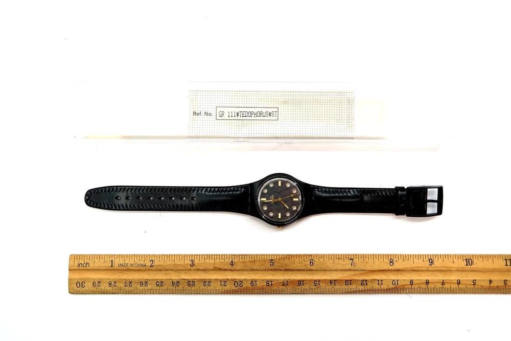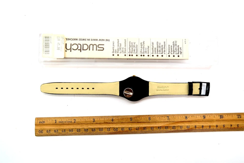 NEW Swatch Watch REGARDEZ-LA GB211P with Case 2002 NOS Gents VINTAGE This eBay listing is for a New Old Stock classic SWATCH WATCH that comes as you see pictured in the listing and noted above. This watch is brand new and never used before and comes with the original case. If you collect classic Swatch Watches, then please check out my other listings in my ebay store for many more great Swatches!! I just picked up close to 800 NOS Swatches from a local auction where I'm told the consignor had one of the largest Swatch watch collection in the United States. This was their 3rd and final auction of Swatches. In total, I purchased close to 1500+ Swatches!! Many of the watches are Special Editions, Limited Editions, Boxed Sets, Scarce and rare models plus other vintage Swatches as well. I will remove all of the old Swatch batteries and will replaced them with brand new batteries to verify that they are all are all in good working condition unless noted below. Please note that vintage and retro Swatches are on the smaller size compared to modern style watches. Most standard Gents (mens) watches have a 33mm-34mm case. I will try to include a picture with each new listing showing the watch next to a standard ruler so that you can see the true size of this collectible Swatch watch. Swatch name : REGARDEZ-LA Model : GB211P New Battery : Yes (due to age, the original battery was removed with a new battery installed) Features/Notes : Works Great! Circa 2002. PLEASE NOTE - the paperwork included with this Swatch is period correct for this make and model but it doesn't have the correct model number written on the paperwork. Seller Location Reference - Box 64 BID IN CONFIDENCE – CHECK MY FEEDBACK! My goal is your satisfaction. I leave positive feedback right after the payment is received for all orders!! If you plan to leave anything less than positive feedback and 5 stars - please let me know so that I can work out any problems that you may have. I aim to please!! SHIPPING & HANDLING FOR US BIDDERS We ship ASAP upon payment as noted above within 1 business day 99% of the time!! We normally pack up your new treasures 2 - 3 times a day and ship using USPS and Fedex Ground so that you get your items in a timely fashion. As always - there is no charge for local pickup on any of my items!! SHIPPING AND HANDLING FOR INTERNATIONAL BIDDERS Import duties, taxes and charges are not included in the item price or shipping charges. These charges are the buyer’s responsibility. Please check with your country’s customs office to determine what these additional costs will be prior to bidding/buying.” THANK YOU AND HAVE A WONDERFUL DAY!! Powered by SixBit's eCommerce Solution