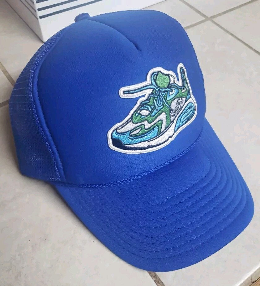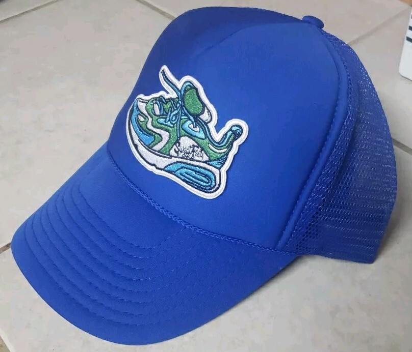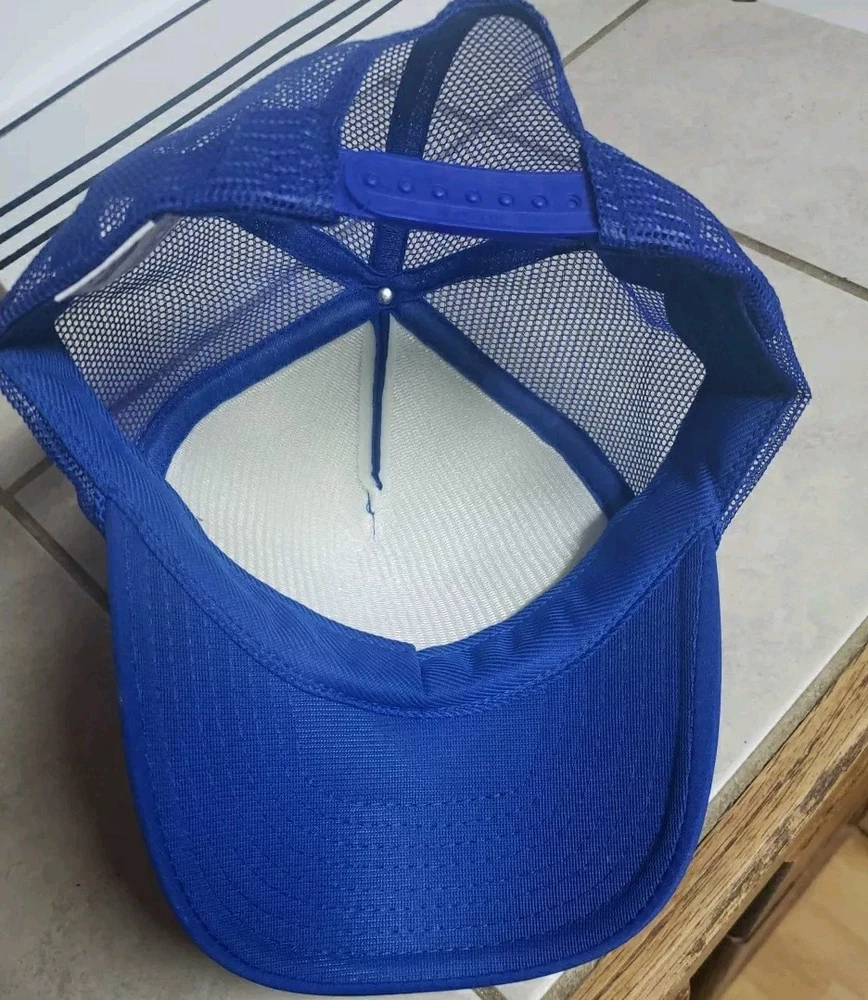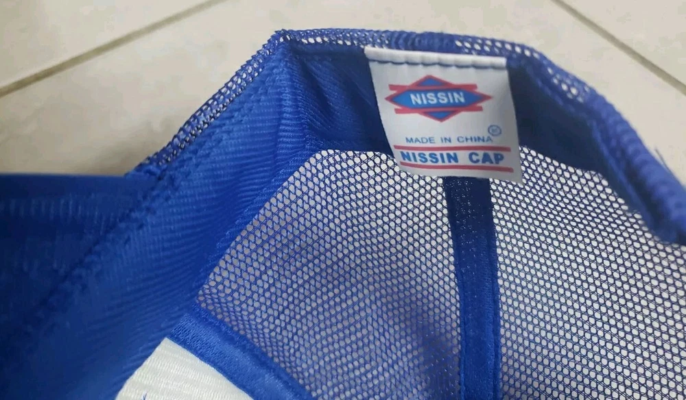 Blue Nissan adjustable cap. Has shoe iron on patch on front from Sweat Fest OKC in Oklahoma City, OK. Dont know what year but it was early 90s