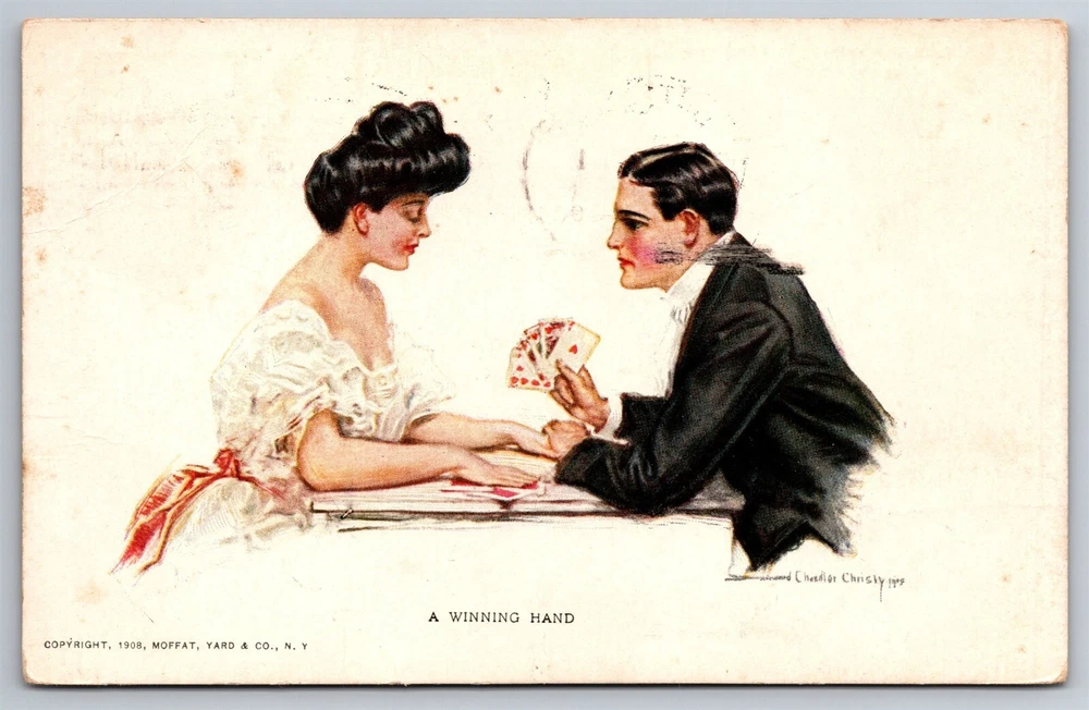 Sweathearts Playing Cards Moffat Yard & Co 1908 Artist Signed Postcard Y14
