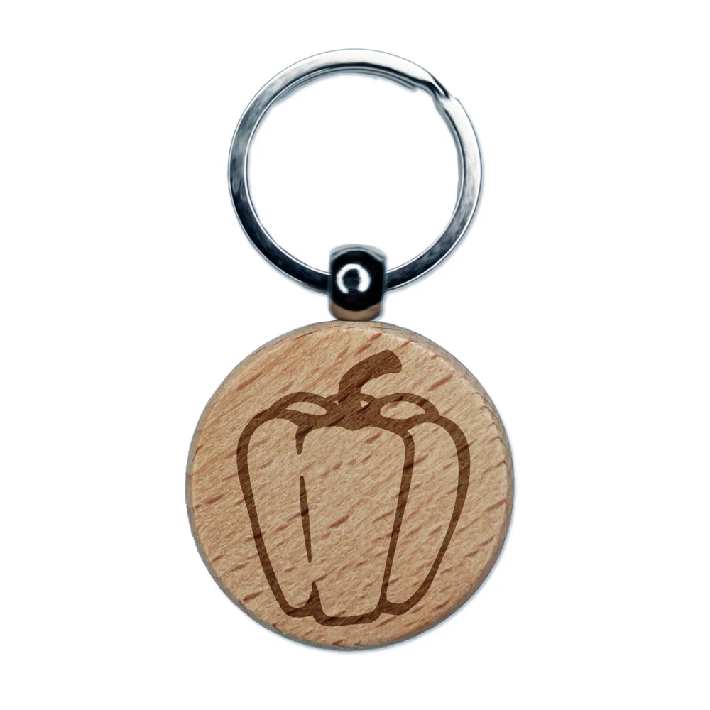 Sweet Bell Pepper Engraved Wood Round Keychain Tag Charm