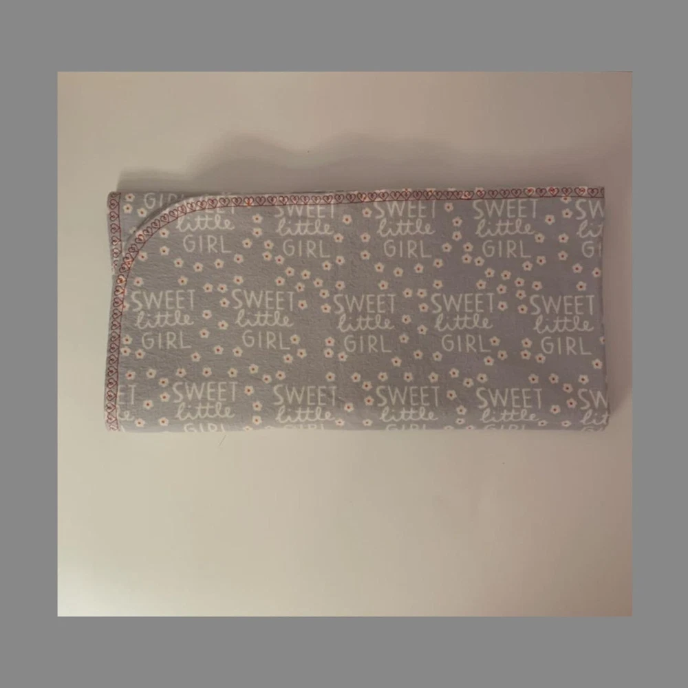 Are you anticipating the arrival of a new little one? Do you need a gift for a new baby? Are you looking for a cute blanket for a sweet little girl nursery? Look no further! This reversible cotton flannel snuggle baby blanket makes a perfect baby shower gift for the nursery. This sweet little girl blanket is handmade with much love and care. Cotton flannel fabric makes the baby blanket and this blanket is great for the crib, snuggle time, nap time, stroller or car rides. It can also be used as a floor blanket. This soft baby blanket can also be used as a burp cloth if none are on hand due to the flannel's absorbency. The same fabric constructs both sides of the baby nursery blanket and decorative stitching borders the baby blanket. This soft crib blanket features a gray background with "Sweet Little Girl" printed in white and red flowers scattered throughout. Decorative red heart stitching borders the blanket. The decorative stitching around the soft blanket help prevent the blanket from bunching up and add a special touch. The blanket also features curved corners. Your little one will be so cozy bundled in this soft blanket! This sweet little girl baby blanket measures approximately 32" x 32". Reversible Flannel Snuggle Blanket Care Instructions: Machine washable Gentle wash in warm water with mild detergent Air dry or tumble dry on low heat Use a warm iron if required. This listing includes the handmade Reversible Flannel Snuggle Baby Blanket. This soft crib blanket is handmade by me in my smoke-free home. This baby blanket would make a wonderful baby shower gift! I pre-washed the fabric once.