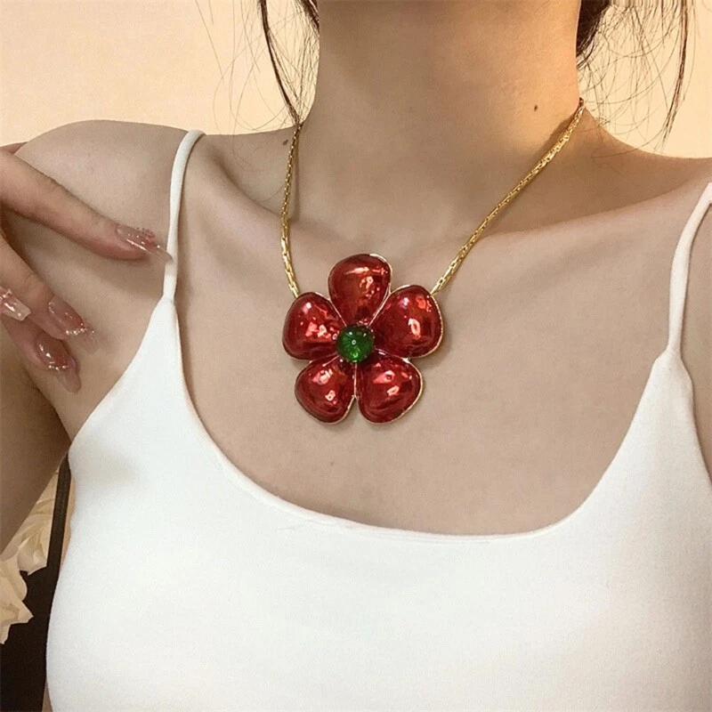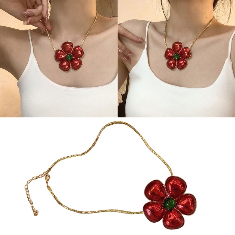 Sweet Jewelry Exaggerate Red Flower Clavicle Chain Valentines Day Choker Jewelry Features: Stand out with this red floral choker necklace, for adding a touch of unique to any outfit. Crafted with alloy, this short collarbone necklace is not only durable but also lightweight, ensuring comfortable wear throughout the day. Designed for mature women who their inner sophistication, this red floral choker necklace exudes a refined and confident. Whether it's a formal event or a casual outing, this versatile necklace elevates your making it suitable for various occasions. A thoughtful choice for and family, this red floral choker necklace is sure to make them feel special and cherished. Specifications: Alloy Size:Approx.40+5cm/15.7+1.97" Package Includes: 1Piece Flower Necklace note: Please allow 1-2cm errors due to manual measurement,Please make sure that you do not mind before you order. Due to the difference between different monitors, the picture may not reflect the actual color of the item.
