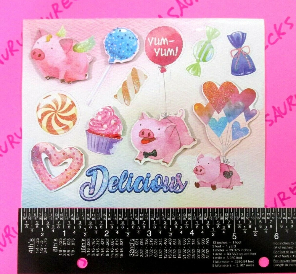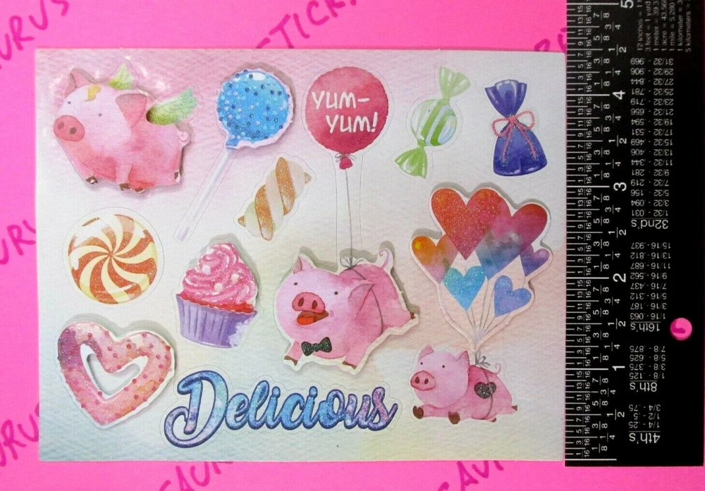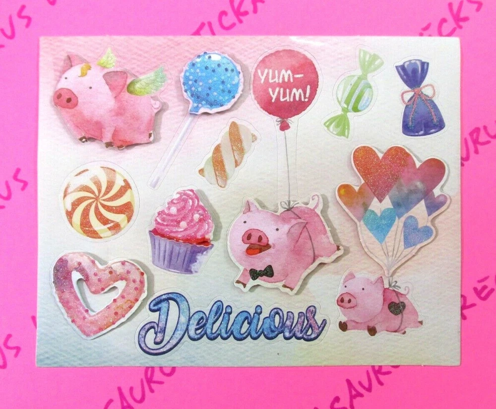 Sticker Sheet Is New. Sticker Theme Is Sweet Treats Pigs & Candy. Sticker Sheet Is A 3D Pop Up Glitter Small Sticker Sheet. When Purchasing Multiple Sticker Sheets Or Packs Please Add All Items To Cart Before Purchase So That Your Purchase Combines Down To Base Shipping Price. All items are shipped WITHOUT tracking in an envelope with cardstock.
