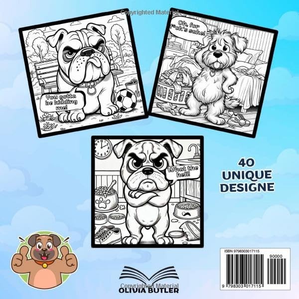 Book Title:Swering Dogs Coloring Book for Adults: 40 Unique DAuthor:BUTLER, OLIVIANumber of Pages:80Format:paperbackLanguage:EnglishPublisher:Contact Seller