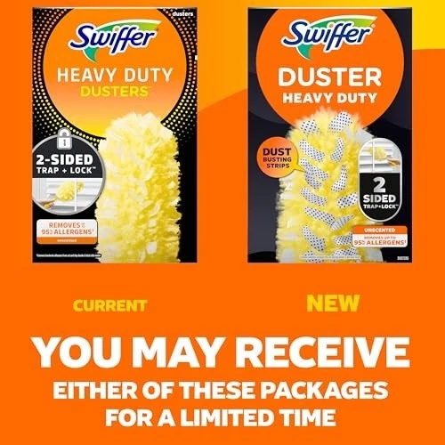 REFILL PACKAGE INCLUDES 11 Heavy Duty Unscented Duster Refills - HANDLE SOLD SEPARATELY EASY DUSTING Swiffer Heavy Duty Dusters have NEW DUST-BUSTING STRIPS to break down layers of built-up dust, and specially coated fibers that reach deep into nooks and crannies to PICK UP 5X more dust than a feather duster*. *after 9 uses REMOVES ALLERGENS Up to 95% Allergen Removal* *Common inanimate allergens from cat and dog dander and dust mite matter FOR TIGHT SPACES The 360 degree design helps you remove dust from hard-to-reach places like blinds, inside vases, around objects, and more! SUPPORT CLEAN AIR Dust on surfaces can circulate back into the air, compromising the air we breathe. Swiffer Dusters TRAP + LOCK dust from surfaces to support clean air and reduce dust. To keep your home clean and virtually dust-free, try Swiffer! GREAT FOR SMALL LIVING SPACES Perfect for small living spaces like apartments and dorm rooms, Swiffer Heavy Duty Dusters are compact, lightweight and easy to store, so they're always ready to go! GREAT FOR CITY DUST Swiffer Dusters are perfect for tough and stubborn city dust. The dust-busting strips tackle sooty messes with ease, and the specially coated fibers TRAP + LOCK dust from your surfaces to support clean air.