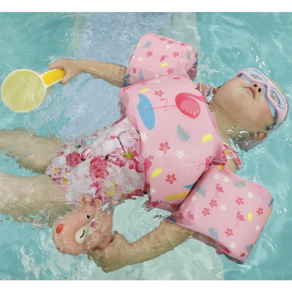 & Parents Love it – Water is always fun. Children love to swim and admire our swimming floats for for comfort and feeling of newly found independence. enjoy the freedom they have in the water, psychological fears disappear and they become more interested in swimming. Parents surely appreciate the quick dry material and simple design with just buckle for easy on and off. 【Material】 Made of Polyester +Waterproof non-woven + Foam foats 【Applicable Age & Weight】 The swim life vest fits for 2-6 years old (Buoyancy in the 30-55lbs of use) 【protection and Adjustable Buckle】Adjustable chest strap and double-buckle for a comfort fit.Safety shoulder harness design to prevent children from removing the vest without parental help and keeps the vest from sliding off during use 【Application】This swim life vest is great for swimming training in Pool, lake, beach, etc. Swim Vest for up to 55 lbs. Baby Swim Training, Lifebuoy, Children Swim Training Equipment, and etc. 【NOTE】This swim life vest is a training life jacket which aims at providing safe swimming experiences. There are three separate inflatable airbags to help the be familiar with the water, building confidence, and allowing them to learn swimming in a safe condition. This is a swim aid and should not be used as life-preserving equipment. Adult supervision is required at all times.