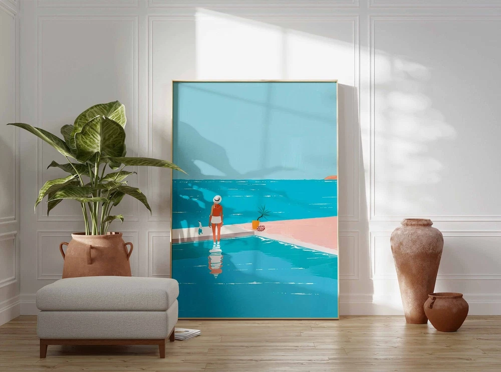 Swimming Pool Wall Art Swimming Art Print Swimming Poster Blue Art Print Swimming Pool Gift Summer Art Swimming Gift Water Art Material: Premium luster photo paper Print type: Inkjet printing One side printed + The finish provides the highest possible resolution and color saturation + Lasts up to 200 years in color and 400 years in black-and-white + Printed on high-quality resin-coated photo base paper medium + Posters can be hung with double-sided tape, tacks, or framed + Hand washing with a gentle cry cloth is recommended for extended durability I will hand select the best choice of paper for your chosen design to ensure top quality results for a beautiful, bright and luxurious print. All prints are sealed in cellophane slips for protection during transportation, and are shipped in a protective cardboard envelope.