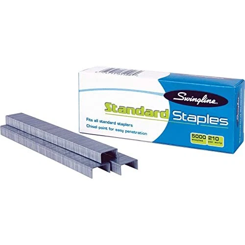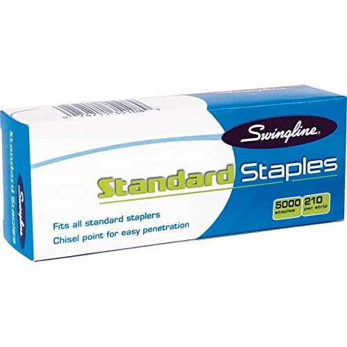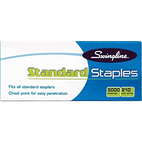 Swingline Staples, Standard Staplers for Desktop Staplers, 1/4" Length, 210/Strip, 5000/Box (35108) RELIABLE PERFORMANCE – Swingline staples set a higher standard for reliable performance over comparable staples. Convenient staples help you stay organized. CHISEL POINT FOR FEWER JAMS – Sturdy staples are constructed to quickly pierce paper with sharp chisel points. Designed to prevent jams and ensure smooth workflow. SECURES 25 SHEETS OF PAPER – These staples serve a variety of typical fastening needs. With a ¼” leg length, they can hold up to 25 sheets of paper, making them a perfect choice for most projects. 5,000 STAPLES – Includes one box of 5,000 staples. Each strip has 210 staples, allowing you to keep on stapling through long projects without running out. FITS MOST STANDARD STAPLERS – Versatile staples are designed to work with most standard staplers, simplifying the supply process and allowing for easy refills. Note: Packaging May Vary. Swingline Standard Staples provide reliable, easy stapling for your fastening needs. Dependable staples set a higher standard for reliable performance, helping keep your office organized and running smoothly. Sharp chisel points penetrate paper easily, preventing jams. The ¼” leg length staples are designed to hold up to 25 sheets of paper, allowing you to fasten most papers and projects with ease. Includes one box of 5,000 staples, maximizing productivity and minimizing the need for re-ordering. Each full strip contains 210 staples. Strips are compatible with most standard staplers. Note: Packaging May Vary. Shipping We offer FREE shipping on all orders! We ship within Three business days of payment, usually sooner. We use a selection of shipping services such as UPS, FedEx, USPS etc. We only ship to the lower 48 states, no APO/FPO addresses or PO Boxes allowed. Local pickups and combined shipping options are not provided at this time. Return You can return a product for up to 30 days from the date you purchased it. Any product you return must be in the same condition you received it and in the original packaging. Please keep the receipt. Feedback Customer satisfaction is very important to us. If you have any problem with your order, please contact us and we will do our best to make you satisfied. Contact Us If you have any queries, please contact us via ebay. We usually respond within 24 hours on weekdays. Thank you for shopping at our store.