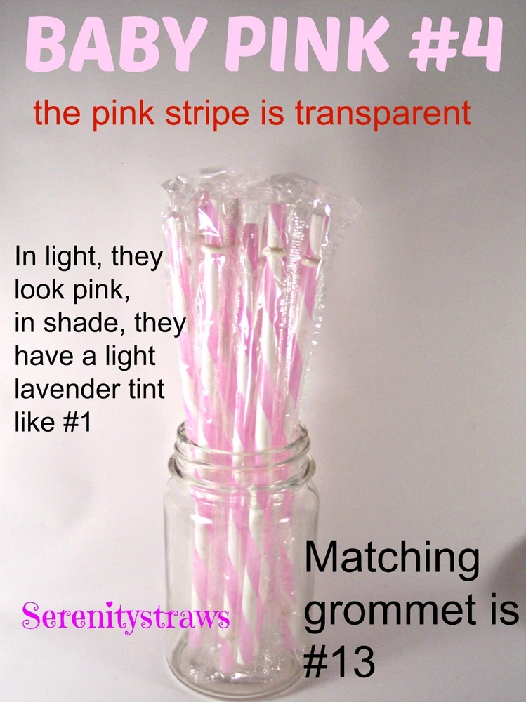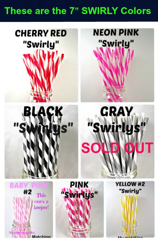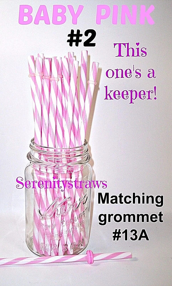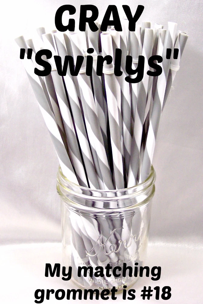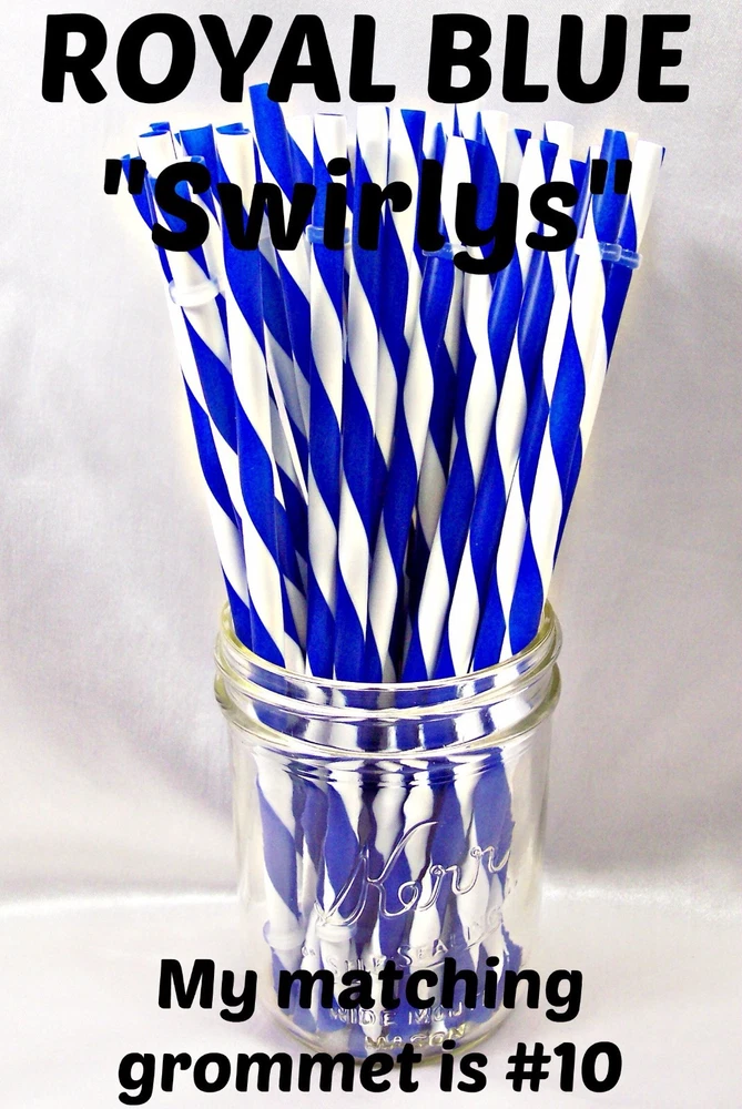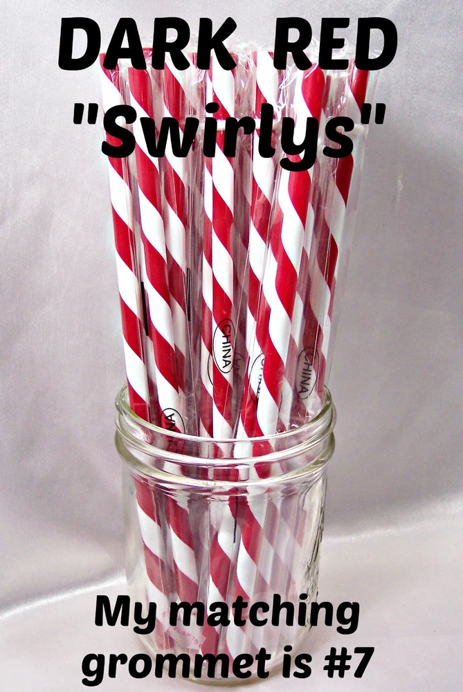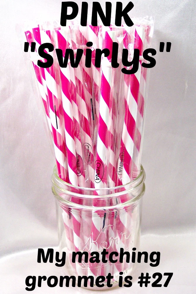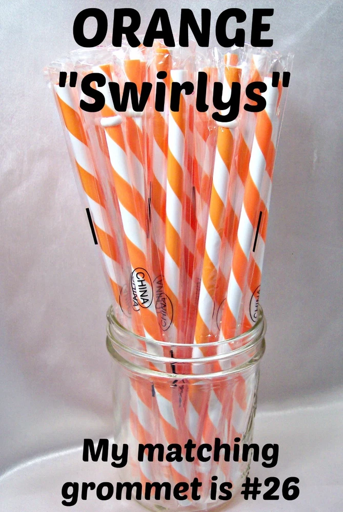"SWIRLY" STRAWS, 1/4" X 7", 9", or 11", Reusable, BPA Free HELLO! Welcome to SerenityStraws ! DO I COMBINE SHIPPING IF YOU BUY MORE THAN 1 ITEM? You bet I do!! I only charge the actual shipping cost, or a few cents more. After I pack & weigh your package, if the shipping calculated too high, I will refund the excess after I print your label (or as soon as I get time). YOU MUST ADD ALL ITEMS TO YOUR CART BEFORE YOU CHECK OUT, IN ORDER FOR THEM TO BE COMBINED INTO 1 ORDER & SHIPPING COMBINED. I have changed suppliers for all my straws, so I do have a few different shades in a couple colors. PLEASE be sure to look at the pictures so you will order the correct shade. IF YOU WANT TO MIX COLORS, JUST ADD A MESSAGE WITH THE COLORS/QTY. YOU WANT! These straws are 1/4" wide (9/32" is the actual width, just a hair over 1/4") and the lengths are 7", 9" & 11". they are polypropylene, BPA FREE some are wrapped, some are not they are reusable, they have that little non-removable ring on them. Just put the ring end into your tumbler, pop on the lid, and it prevents the straw from falling out! In this listing, I do offer an option to buy 1 of each color straws in each length, and another option for 1 of each color grommets in both grommet sizes. All other grommet choices are in my grommet listing . If you want to choose your own mix of straw colors, Just buy the total in 1 color and send me a message RIGHT AWAY with the colors/qty. you want. NEED GROMMETS??? I have a separate listing for just grommets. I have 5/16", which are a close fit to the straw, and 3/8", which is a looser fit. Either size will work with these straws, it is just personal preference. In the grommet listing, I have a picture of how the grommets fit on 1/4" (9/32") straws. If you want matching grommets for the straws you are buying, in the drop-down menu of this listing, select the color of straws you want to match. You will see a picture of the straws you selected. It will also show the matching grommet # you will need to order, so jot it down, then go to the grommet listing. OR>>>when you order the grommets, just ask me to match them to the straws you are also ordering. You will not automatically get grommets with this straw order. I do occasionally put items on sale, and add new items, so be sure to add me to your "favorite sellers" & subscribe to my monthly newsletter so you don't miss out! Visit My eBay Store Add me to your Favorite Sellers PLEASE BID ONLY IF YOU WILL PAY WITHIN 3 DAYS OF AUCTION END!!! Have fun bidding, but if you bid on (and win) my auctions but choose not to pay me for them, I will hunt you down like a mad dog, so please don't put us through that, cause it won't be pretty...trust me!! I WILL EXPECT YOUR PAYMENT WITHIN 3 DAYS OF AUCTION END or the dogs will be released!!! But it's best to go by the rule.. don't buy if you can't pay . ALL MY ITEMS COME FROM A SMOKE-FREE, CHILD-FREE HOME!!! I do have a cat (Oliver), but he's more well-behaved than most people I know. PLEASE MAKE SURE YOU HAVE YOUR CORRECT ADDRESS IN YOUR PAYPAL ACCOUNT. If your pkg. is returned to me due to wrong address, I will cancel your order, & refund your money for the cost of the items. The Post Office will not re-ship for the original shipping cost. You will need to place a new order. I will ship your pkg. the next working day after I receive your payment. As soon as I print your label, you will see a tracking number in your "MY EBAY". If you don't receive it in a reasonable amount of time, CONTACT ME!! I am not a big company, I sell these items from my home. If I occasionally make a mistake, please give me a chance to correct it! I stand behind my sales and work hard to deserve your positive feedback! YOUR SATISFACTION IS OF UTMOST IMPORTANCE TO ME!!! If you have any questions, PLEASE ask me before you begin bidding. I am more than willing to help you out, so please don't be afraid to ask me anything! If you read my listing and see an error in detail, I'd really appreciate you making me aware of it, and if you make a mistake and order the wrong thing, just tell me and I'll fix it (before it is shipped).