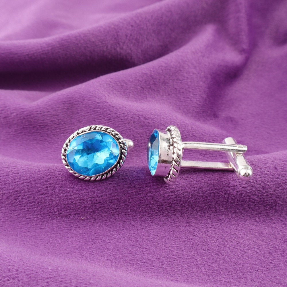 Welcome To Our Shop Gempires ------------------------------------------- Set the trend with this stylish 925 Sterling Silver Cufflinks studded with Swiss Blue Topaz sparkling. Give your looks a little treat by wearing this exclusive ornament. Natural Swiss Blue Topaz Wedding Statement Mens Cufflinks 925 Sterling Silver Check My Other Cufflinks Listings : Click Here SKU: CL-1-8 Gemstone: Swiss Blue Topaz Stone Shape: Oval Metal : 925 Sterling Silver Length: 0.6 Inches ___________________________________________________________________ Shipping Handling - Free Standard Shipping all over the world Handling Time - 2 to 5 BUSINESS Days Delivery Time - 7 to 20 Days ( Various on destination ) _________________________________________________________________ Returns - 1.We provide a 100% Money Back Guarantee, excluding shipping costs, within 30 days from the date of item receipt. 2.The item must not be altered or damaged in any way shape or form. 3.Upon receipt of the aforementioned items, your payment will be promptly refunded. 4.Please be so kind as to contact us via email in order to acquire comprehensive return instructions before proceeding with the return of the merchandise. 5.Kindly be advised to allocate a maximum period of 1 business day for the processing of all returns, in order for the appropriate credit to be applied. 6.Sizing does not affect the return policy. _________________________________________________________________ FAQ's - Q.1 ARE THE ITEMS YOU ARE SELLING BRAND NEW? We exclusively offer brand-new products, refraining from the sale of pre-owned jewelry. Our entire jewelry collection is composed of 100% natural, conflict-free pieces. We do not engage in the trade of imitation or lab-grown gemstones and diamonds. Q.2 WHAT ARE YOUR BUSINESS HOURS? we operate 24x7 as we have a dedicated team who works in different shifts to deliver the services to our valuable customers. ________________________________________________________________ Gempires is committed to delivering customers an unparalleled experience through the provision of exquisite handmade jewelry, meticulously crafted to uphold the most exacting standards of quality. Our operations encompass dual roles as both discerning connoisseurs and skilled artisans within the realm of jewelry making. We proudly hold an extensive proficiency in the fine art of enhancing gemstones, allowing us to harmonize them seamlessly with diverse aesthetic inclinations. We are delighted to extend to you the privilege of curating your very own jewelry collection. This collection will be graced by the presence of genuine and splendid natural gemstones, each possessing an innate authenticity and beauty that is truly unparalleled. **** STAY BLESSED ALWAYS*****
