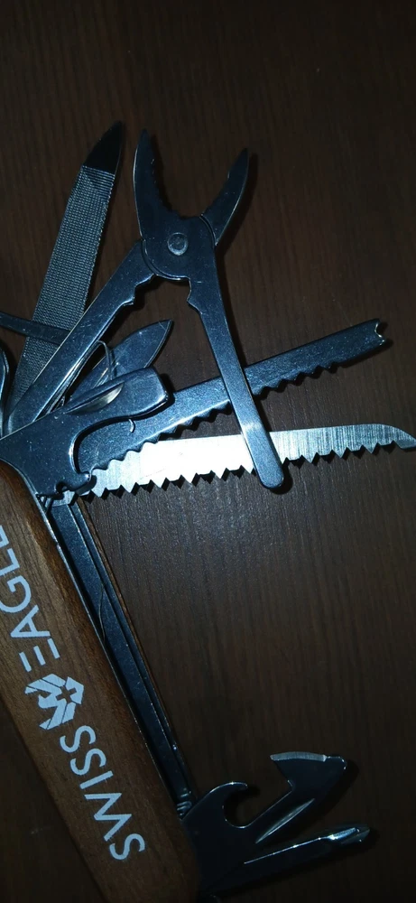 The Swiss Eagle Classic Multi-Tool Army Knife is a compact and versatile pocketknife with a clip point blade crafted from stainless steel. It features a manual opening mechanism and a polished ABS handle for a comfortable grip. This ambidextrous knife includes three blades and is part of the Swiss Army style knife collection, perfect for outdoor enthusiasts and collectors alike. The red color adds a pop of color to this original and reliable tool from the renowned SwissEagle brand.