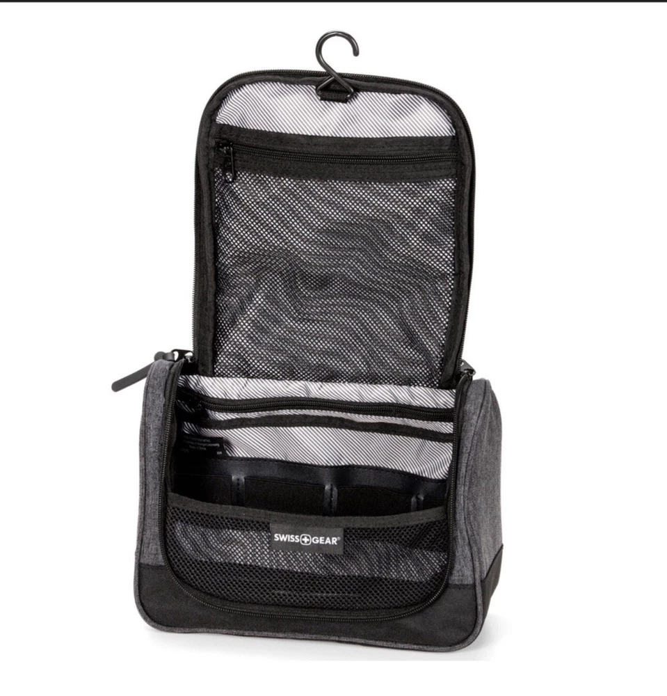 • Large-opening main compartment for easy packing and transportation of travel-sized items • Large internal mesh pocket under opening with built-in hanging hook • Integrated elastic strap system with slip pocket to easily store bottles and other necessities • Durable webbed handle