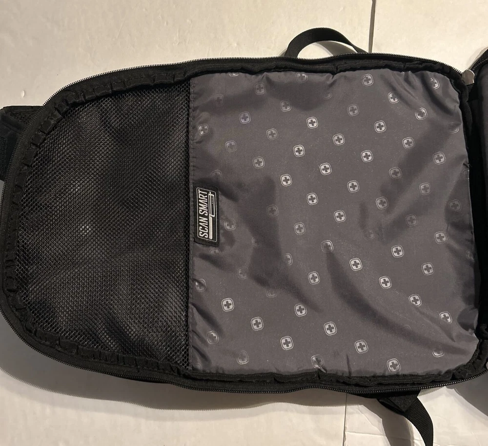 Swiss Gear scan smart airflow laptop/travel bag black 6 pockets 18 in L 18 in W 15 in H 6 in Return Policy Please note, the item must be returned in the exact same condition as it was received which includes unopened if factory sealed and all original tags in place.