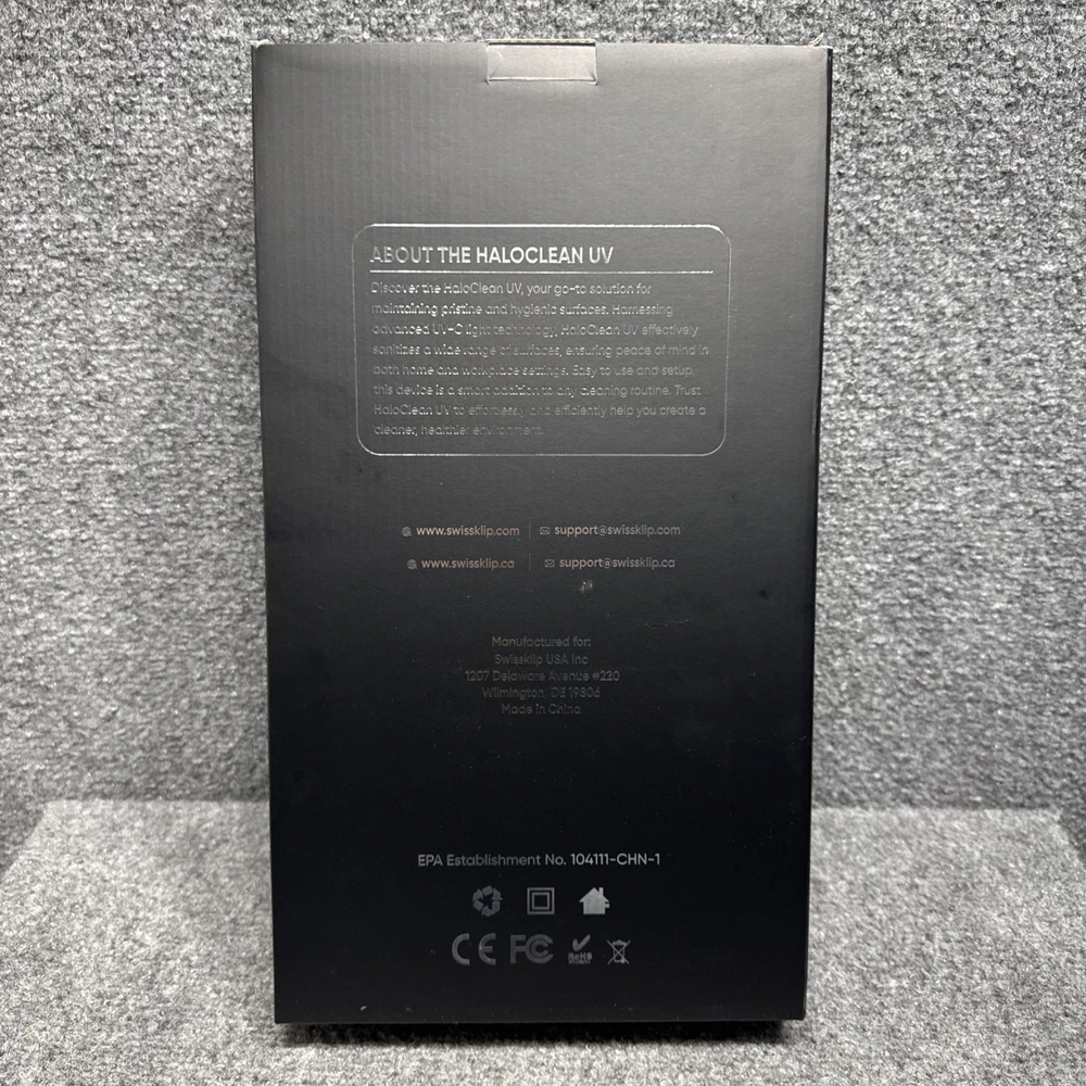 The Swissklip HaloClean UV Original is a corded electric home disinfection device in black color. It operates at 110 Volts and weighs 1.3 pounds. It is designed to help eliminate dust mites and improve indoor air quality.