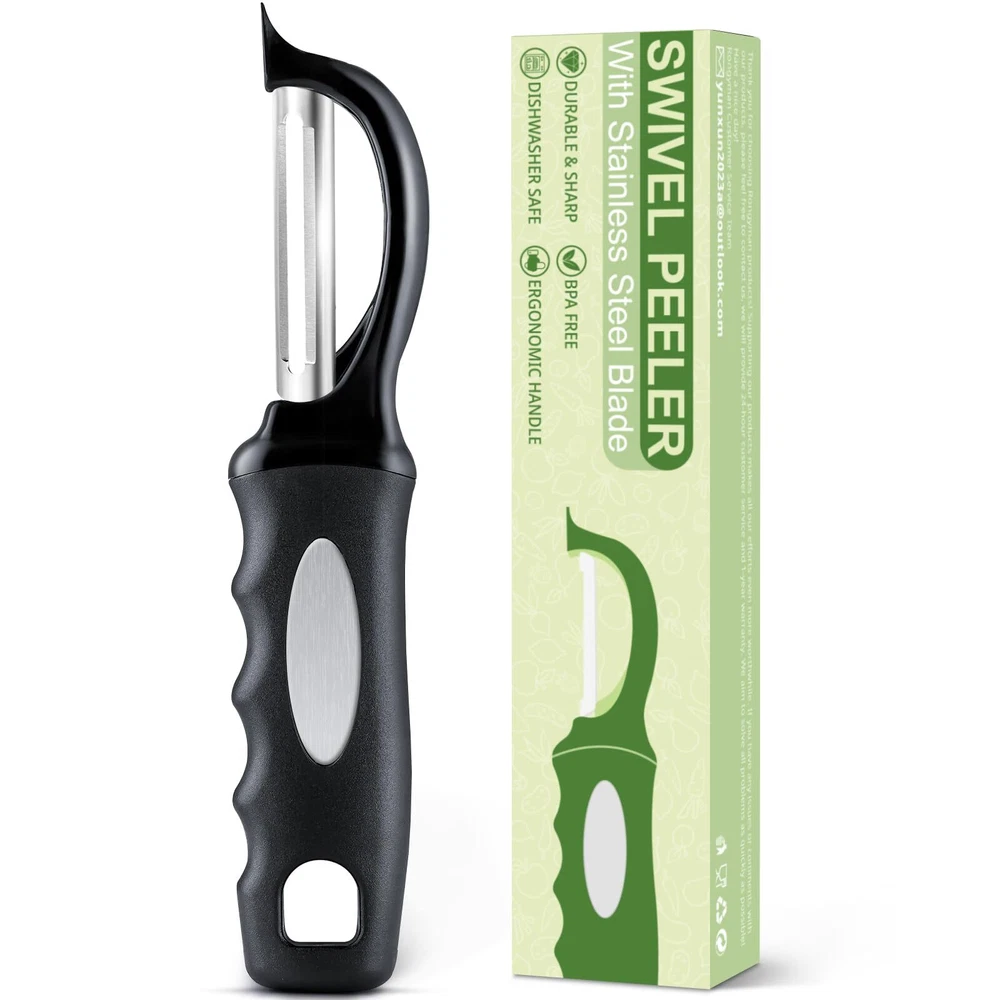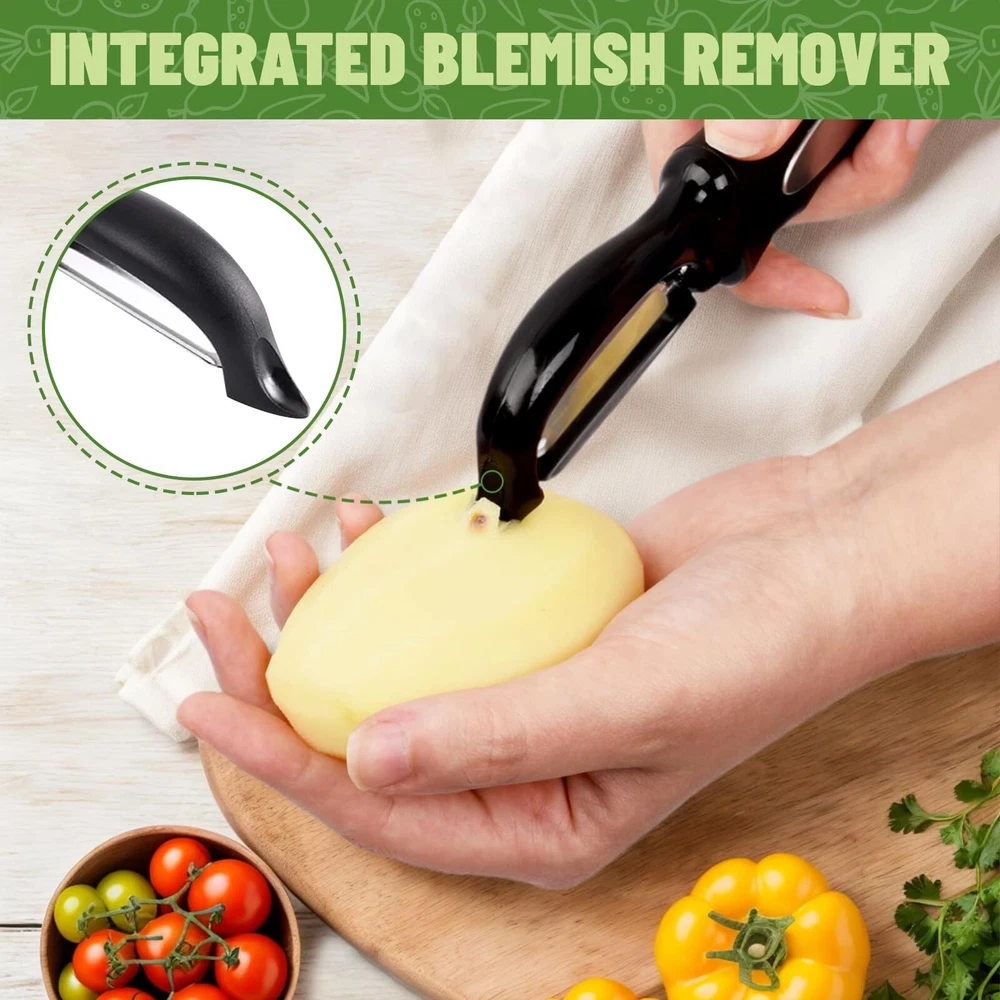 Swivel Vegetable Peeler, Potato Peeler with Blemish Remover, Veggie Peeler with Features: 🍎Built To Last - We have designed our food peeler with premium quality, food-grade stainless steel that is durable and rustproof. Stay sharp for longer! It is ideal for peeling even the toughest fruits and vegetables. Use this stainless steel peeler for apples, potatoes, carrots, and cucumbers. It’s even great for shaving hard cheeses and chocolate. 🍎Swiveling Twin Blades - Smooth and effortless peeling starts with our vegetable peeler! The swiveling design of this peeler smoothly follows the contours of fruits and vegetables, with sharp dual blades, making it easy to peel apples, potatoes, and other tough-skinned fruits and vegetables. The flexible twin blades save you time during food prep to help you peel in both directions and make peeling comfortable and quick perfect for left and right-handed individuals. 🍎Integrated Blemish Remover - A sharp eye remover at the top of the blade can easily scoop out blemishes and potato eyes to further add to your convenience. 🍎Ergonomic Non-Slip Handle - Our peeler features a non-slip grip, which remains effective even when wet for maximum control and safety. Plus, the ergonomic lightweight handle relieves pressure on the hands, providing optimal comfort and ease of use for everyone, and gives a firm grip even to those with weaker or arthritic hands. A large hole is designed on the handle for easy hanging to save storage space. 🍎Save Time - If you’ve been looking for a peeler that’s quick and easy to clean, then look no further! Our kitchen peeler has smooth glide technology that won't be clogged with peels. Our peelers can be hand-washed or put in the dishwasher so you spend less time washing up and more time with your family! Features: 🍎Built To Last - We have designed our food peeler with premium quality, food-grade stainless steel that is durable and rustproof. Stay sharp for longer! It is ideal for peeling even the toughest fruits and vegetables. Use this stainless steel peeler for apples, potatoes, carrots, and cucumbers. It’s even great for shaving hard cheeses and chocolate. 🍎Swiveling Twin Blades - Smooth and effortless peeling starts with our vegetable peeler! The swiveling design of this peeler smoothly follows the contours of fruits and vegetables, with sharp dual blades, making it easy to peel apples, potatoes, and other tough-skinned fruits and vegetables. The flexible twin blades save you time during food prep to help you peel in both directions and make peeling comfortable and quick perfect for left and right-handed individuals. 🍎Integrated Blemish Remover - A sharp eye remover at the top of the blade can easily scoop out blemishes and potato eyes to further add to your convenience. 🍎Ergonomic Non-Slip Handle - Our peeler features a non-slip grip, which remains effective even when wet for maximum control and safety. Plus, the ergonomic lightweight handle relieves pressure on the hands, providing optimal comfort and ease of use for everyone, and gives a firm grip even to those with weaker or arthritic hands. A large hole is designed on the handle for easy hanging to save storage space. 🍎Save Time - If you’ve been looking for a peeler that’s quick and easy to clean, then look no further! Our kitchen peeler has smooth glide technology that won't be clogged with peels. Our peelers can be hand-washed or put in the dishwasher so you spend less time washing up and more time with your family! eBay integration by