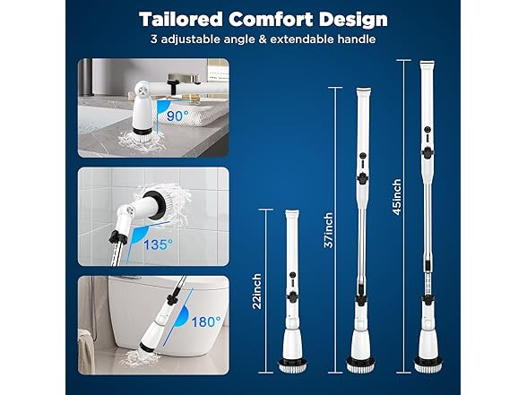 Swtroom Electric Spin Scrubber with Extended Handle and Brush Heads Condition: New Features ✅Efficient Cleaning with Dual Spin Speeds: Our electric cleaning brush offers optimal cleaning efficiency with two adjustable spin speeds. Select the 300 RPM mode for everyday cleaning or switch to the powerful 400 RPM mode for tackling tough grime and stains like soap scum and grout effortlessly. ✅Fast Charging, 180min Working Time: Experience unparalleled power and efficiency with our electric scrubber brush. It boasts an impressive 3-4 hour working time, significantly longer than similar products on the market which typically offer only 30-90 minutes of usage. Say goodbye to frequent interruptions during cleaning sessions as our brush provides a continuous cleaning experience for up to 180-240 minutes on a single charge.(Actual duration may vary based on your cleaning speed and the size of the area being cleaned) ✅ Retractable Handle for Comfort: Make cleaning a comfortable task with our electric spin scrubber featuring a retractable handle. Easily switch between two lengths to clean sinks and surfaces comfortably or reach those hard-to-access areas without bending over or kneeling. Let the brush handle the work for you. ✅Versatile Brush Heads for Every Surface: Our electric spin scrubber includes three interchangeable brush heads catering to various cleaning needs. The flat brush is perfect for large surfaces like floors, walls, glass, and grout, while the round brush is designed for curved surfaces such as bathtubs and sinks. Additionally, the corner brush head efficiently cleans hard-to-reach areas. Effortlessly eliminate grime and stains from every corner with the convenient one-button release design. ✅Easy to Use, Quality Assurance: Our electric cleaning brush is designed for utmost convenience and quality assurance. Assembly and disassembly are effortless, and it features USB-C quick charging compatibility with any 5V adapter. Unlike other spin scrubbers with fixed brush head angles, ours offers three adjustable angles (90°/135°/180°) for added flexibility and convenience, enabling you to clean without constantly changing positions. Specs Brand Swtroom Color White/Black Handle Material Stainless Steel+ABS Specific Uses For Product Floor, Basin, Carpet, Shower, Bathtub Product Dimensions 16"L x 3"W x 6"H In the Box: (1) Swtroom Electric Spin Scrubber with Extended Handle and Brush Heads