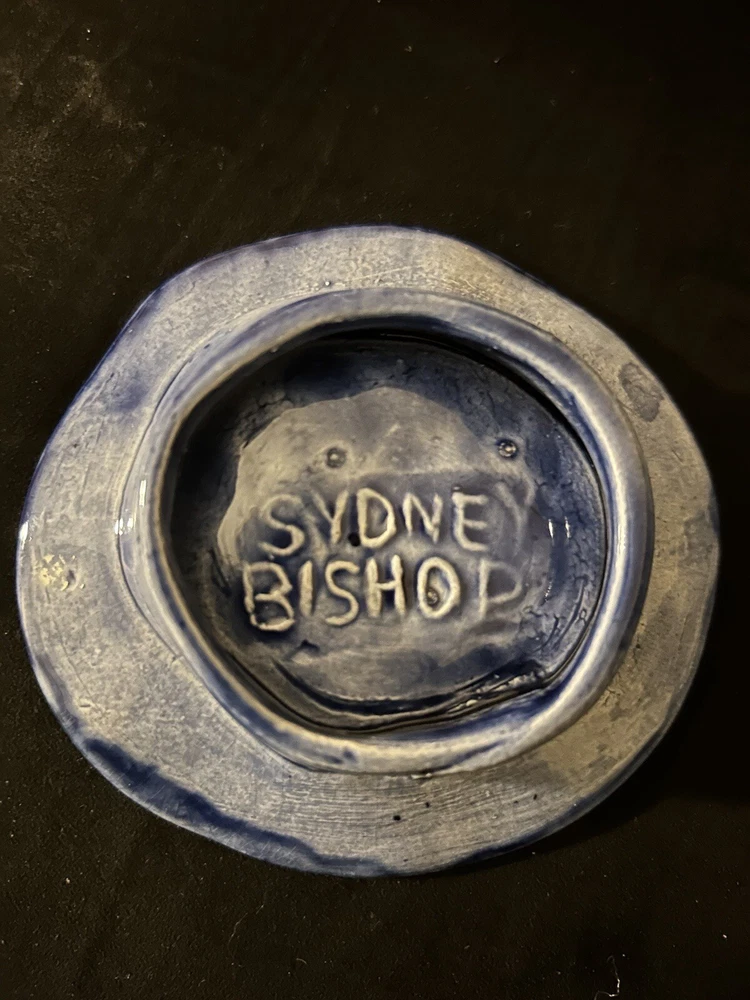 Production Style: Art Pottery Item Height: 1” Material: Ceramic Origin: Americas Signed By: Artist Sydney Bishop Color: Multicolor Production Technique: Studio Crafted Type: Dish Subject: Sea Shell Item Width: 3 3/4” Finish: Salt Glaze Theme: Beach, Sea Life Brand: Sydney Bishop Signed: Yes Country/Region of Manufacture: United States Time Period Manufactured: Unknown Backstamp: Incised Handmade: Yes gtin13: Does not apply Year Manufactured: Unknown Style: Majolica Pattern: All-Over Vintage: Yes Features: Decorative, Hand Painted, Textured UPC: Does not apply Original/Licensed Reproduction: Original