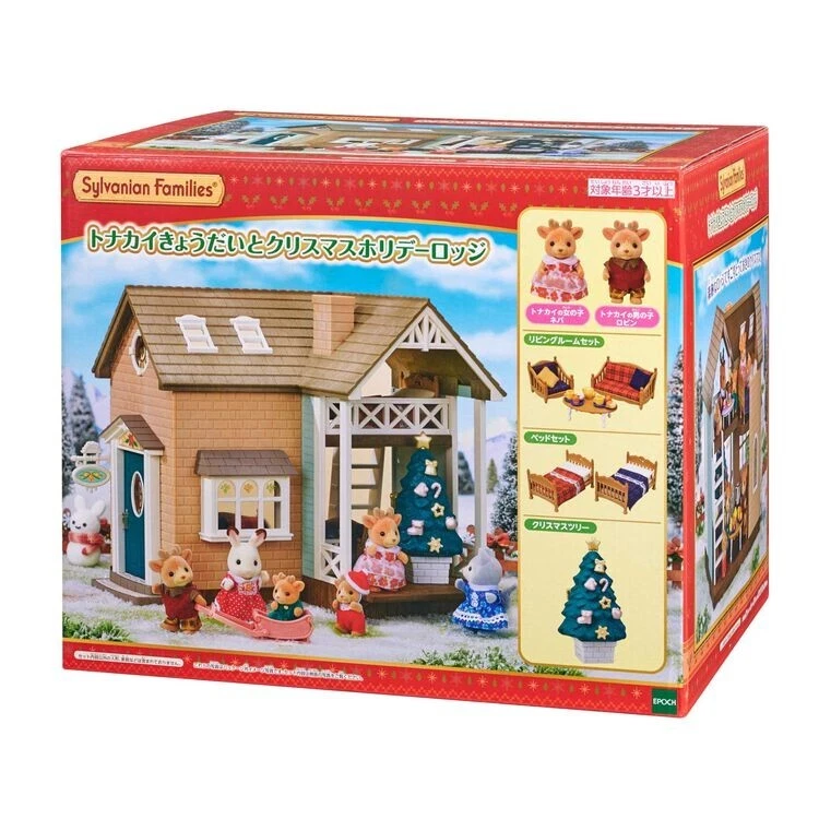 Sylvanian Families Christmas Holiday Lodge Raindeer Brothers Epoch Japan New Description C ondition: New with Box ・Package size: W12.20 × D9.45 × H10.63 inches (W310 × D240 × H270 mm ) [Set content] Reindeer Girl, Reindeer Boy, [Christmas Holiday Lodge] Body, Fence A, Fence B, Ladder, Signboard / [Christmas Tree] Tree, Ornaments (Long Boots x 2, Bell x 2, Santa Hat x 2, Apple x 2, Snowflake x 2, Walking Stick x 2, Star x 2, Tree Topper) / [Bed Set] Bed x 2, Mattress x 2, Coverlet (Red), Coverlet (Navy), Pillow x 2/[Living room set] Sofa, armchair, cushion A x 2, cushion B x 2, stopper A x 4, stopper B x 2, stopper C x 2, cushion cover A x 2, cushion cover B x 2, square Cushion (beige), square cushion (navy blue), table, plate x 2, cup x 2, pot, lid, donut A, donut B, muffin x 2 If you have any questions about this product, please feel free to contact us. Payment: Supports various payments Shipping We ship using FedEx, DHL and Japan Post. I f the customer’s address is in a remote area, a remote area fee may be charged. About other area, please ask us. International Buyers - Please Note: Import duties, taxes, and charges are not included in the item price or shipping cost. These charges are the buyer's responsibility. Please check with your country's customs office to determine what these additional costs will be prior to bidding or buying. Thank you for your understanding.