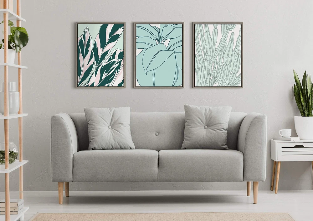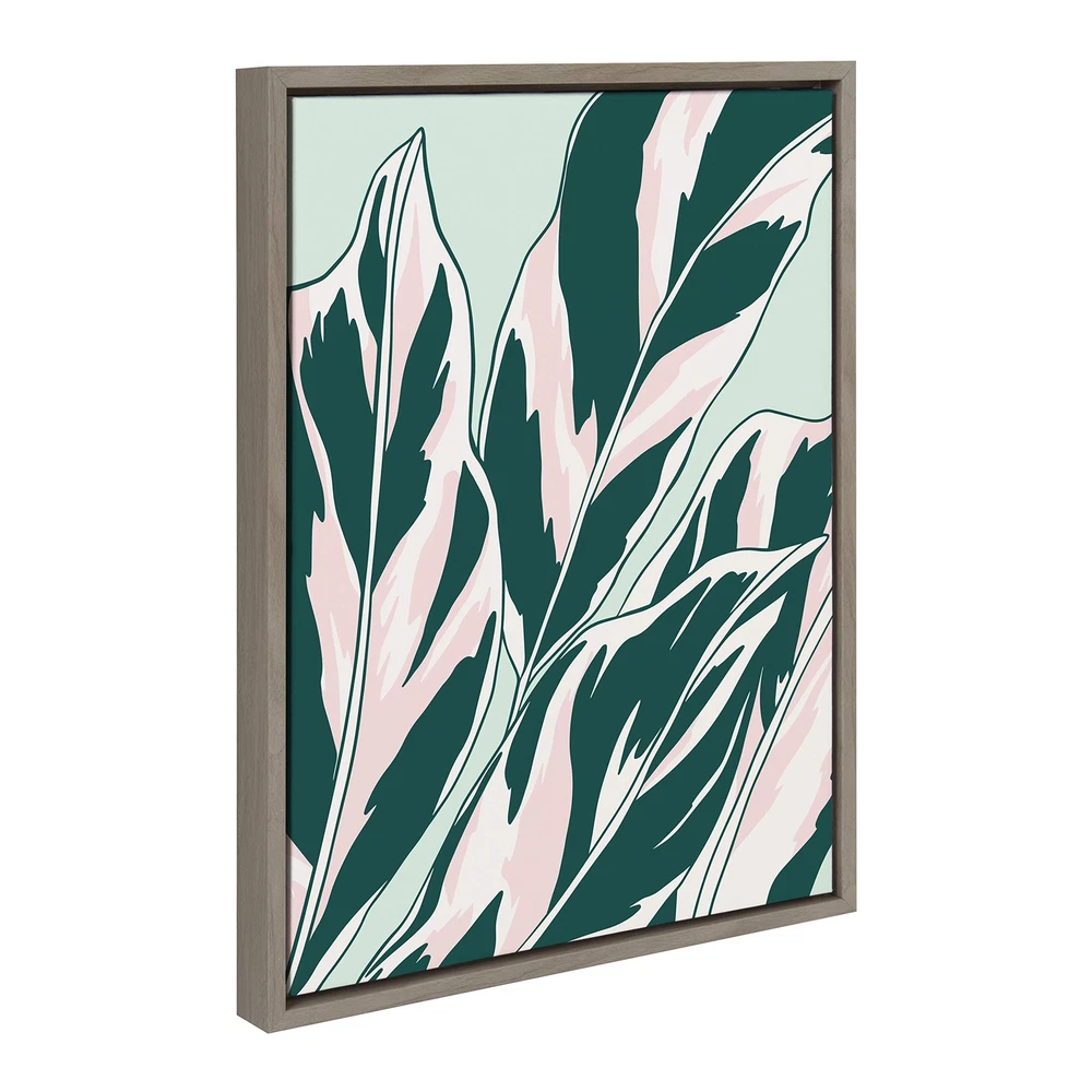 Add a chic, art print that embraces a natural subject in a 80s color palette to your home. Framed in the USA in Waunakee, Wisconsin, this floating canvas art will be a pleasure to look at every day in your living room, bedroom, office, or any room in the home that could use an extra pop of color. Printed on gallery-wrapped canvas and framed with a lightweight polystyrene frame, this wall art has hangers already attached to the MDF back for easy wall display. The outer dimensions are 24 inches tall by 18 inches wide by 1.63 inches deep. Print Name: “Together” TRANSITIONAL CANVAS WALL ART: Plant leaf art on framed high quality gallery-wrapped canvas. Display dimensions are 18 by 24 inches QUALITY MATERIALS: Printed with UV-resistant inks to provide increased durability and fade resistance EASY TO HANG: The frame is made with a premium lightweight polystyrene and has metal sawtooth hangers already attached to the back LOCALLY FRAMED: Gallery wrapped canvas is printed and hand framed in Waunakee, Wisconsin, USA of domestic and imported parts ARTIST DESIGNED: Print "Together" 2020 Alicia Schultz. Vine and Thistle