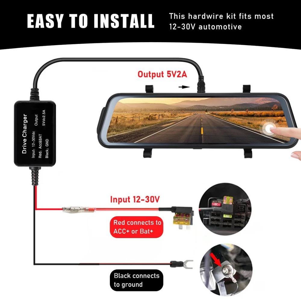 Specification: Material: ABS Quantity: 10 PCS Color: Black Weight: 0.27 lb Input Voltage: 12-24V Output Voltage: 5V Max Power: 10W Fit Type: Universal Fit Why should you choose this product? -No need for cable from car cigarette lighter socket, replace it with a permanent cable. -Your property is under surveillance no worry about collisions ,theft and scratch anymore. -It comes with ACZ(), ACS(mini), ACN(LP-mini) and ACU(ATO) fuse adapters for you to use whatever your vehicles fuse box requires. -Installation in minutes with little to no expertise required. 【Package Includes】: You will receive 1 car recorder power supply, 1 pry, 4 16AMG fuse tap cables and 4 5A chip fuses. The dash cam hardwire with the most popular fuse types will meet the applications for most car models. This set gives all you need to hard wire a dashcam. 【High Secure Standards】: Input: 12V-24V, output: 5V 3A / build in dynamic IC charge IC & magnetic ferrite to prevent electro-magnetic shock, low voltage and overcharge protection, overall 10.5ft hardwire kit can be installed basically on all vehicles. Input length: 3.2ft, output length: 7.2ft. 【Easy Installation】: First, open the fuse box, find the correct fuse slot for your hardwire kit. Second, plug the add-a-circuit into the fuse box in the correct orientation. Then slip the black wire under a metal bolt or screw in your vehicle. Third, power up and test the car recorder and lay out the alignment. 【Low Voltage Protection】: It has a smart low voltage protection system that will automatically shut off the power to your dash cam. When your car's voltage is lower than 11.7V or 11.6V, it will automatically turn off the power. It can protect your car battery more effectively. 【Universal Fit】: This hardwire kit accepts voltage from any type of vehicles runs on 12-24V, works perfect for car, truck, bus, suvs for continuous power. It is with all mini USB dashcams, GPS navigators, radar detectors, etc. It always frees up the cigarette lighter for other devices.