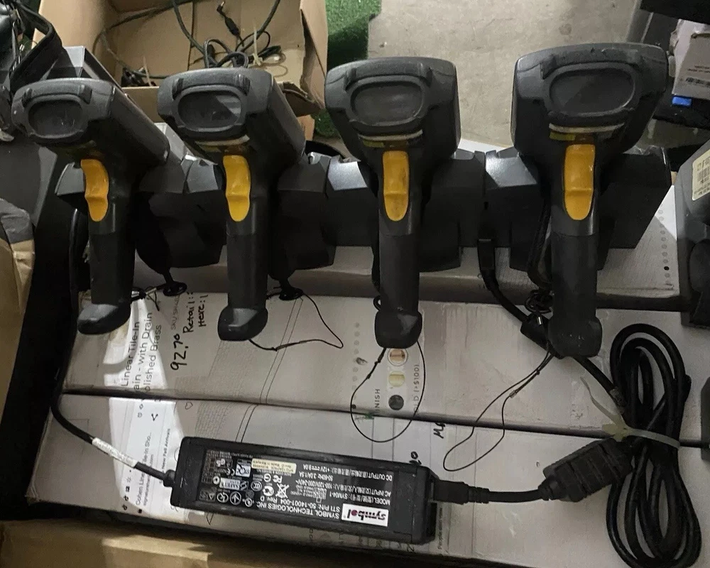 The Symbol MC3090G-LC48HB0GER is a mobile computer/barcode scanner gun set that comes with a 4-way cradle for easy charging and storage. This device, known for its Symbol brand, offers wireless connectivity, making it suitable for retail and business environments where mobility is essential. The model MC3090-LC48HB0GER is designed for efficient barcode scanning and data collection tasks, providing convenience and accuracy in point-of-sale and inventory management operations.