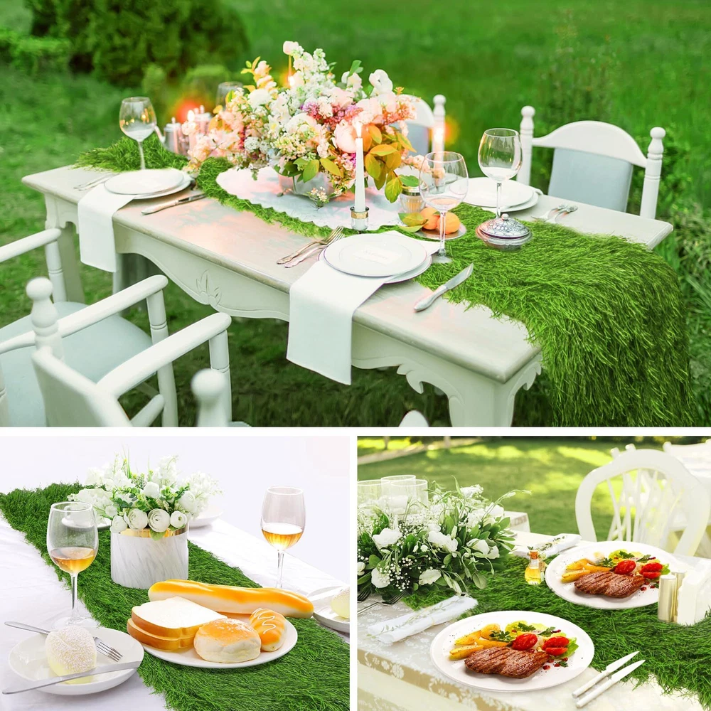 Faux thatch green table runner with evergreen and realisic appearance, ideal for easter,st patricks day, farmhouse party, birthday, garden party decor, holidy, wedding, DIY craft, home decor 【PREMIUM QUALITY】- thatch grass table runner is made of advanced UV resistant PE material, polyethylene fabric and durable latex backing. The thatch straw grass is waterproof, fireproof, anti-bite, it is perfect for indoor and outdoor table decor. 【FLUFFY GRASS TABLE RUNNER】- Faux thatch grass runner has evergreen and realistic appearance, which offer durability and longevity, not easy to decay. The tropical faux turf is non-and lead free, so feel at ease to allow your pets and to play on. No mowing, no watering, no spraying, no fertilizing, the synthetic grass table runner needs no maintenance and looks perfectly fresh and green all year round. 【MULTIUSE GRASS RUNNER】- Perfect for Spring Summer Fall Holidays, weddings, easter, receptions, parties, catered presentations, bridal and baby showers, birthdays, candy buffets, dessert tables and more. Ideal for dishes, table, desk and house decoration. The synthetic grass runner looks extra lush, feels great for dinners. 【EASY TO CLEAN & STORAGE】- The fake grass table runners can be packed in rolls for easy carrying and storage. Just shake the thatch straw table runner, then the above debris or dirt can drop quickly, then flush with a water pipe, and dry it. 【DIY CUT FOR YOUR NEEDS】- The faux grass table runners are easy to cut and can be trimmed to fit your unique design needs, making your special DIY craft. If you are not happy with the product for any reason, please do not hesitate to us. All issues will be solved within 24 hours. Your satisfaction is our priority.