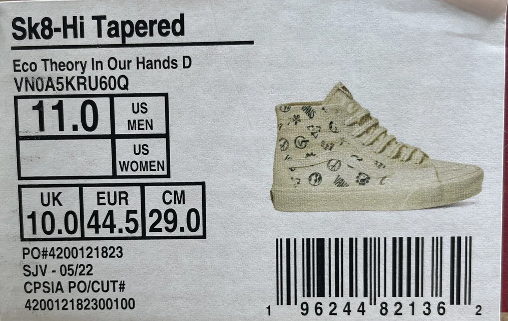 Vans SK8 HI TAPERED Eco Theory In our hands Deep Skateboarding sneakers. New NO Shoebox stylish and comfortable in and off the skate for every event