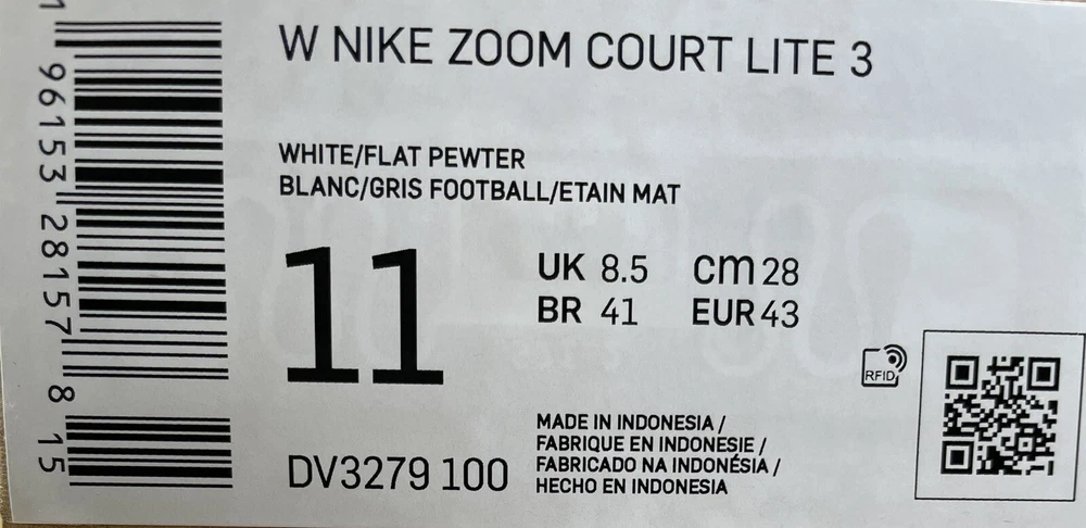 Closure: Lace Up Accents: Logo Department: Women Character: Snike Product Line: Nike Zoom Style Code: DV3279 100 Features: Breathable, Comfort, Performance Country/Region of Manufacture: Indonesia Season: Fall, Spring, Summer Performance/Activity: Tennis Pattern: Solid Insole Material: Foam Upper Material: Synthetic Type: Athletic Outsole Material: Rubber Style: Sneaker UK Shoe Size: 8.5 US Shoe Size: 11 Model: Nike Zoom Court Iite 3 Color: White Shoe Width: Standard Occasion: Activewear, Casual, Workwear EU Shoe Size: 43 Vintage: No Brand: Nike Shoe Shaft Style: Low Top