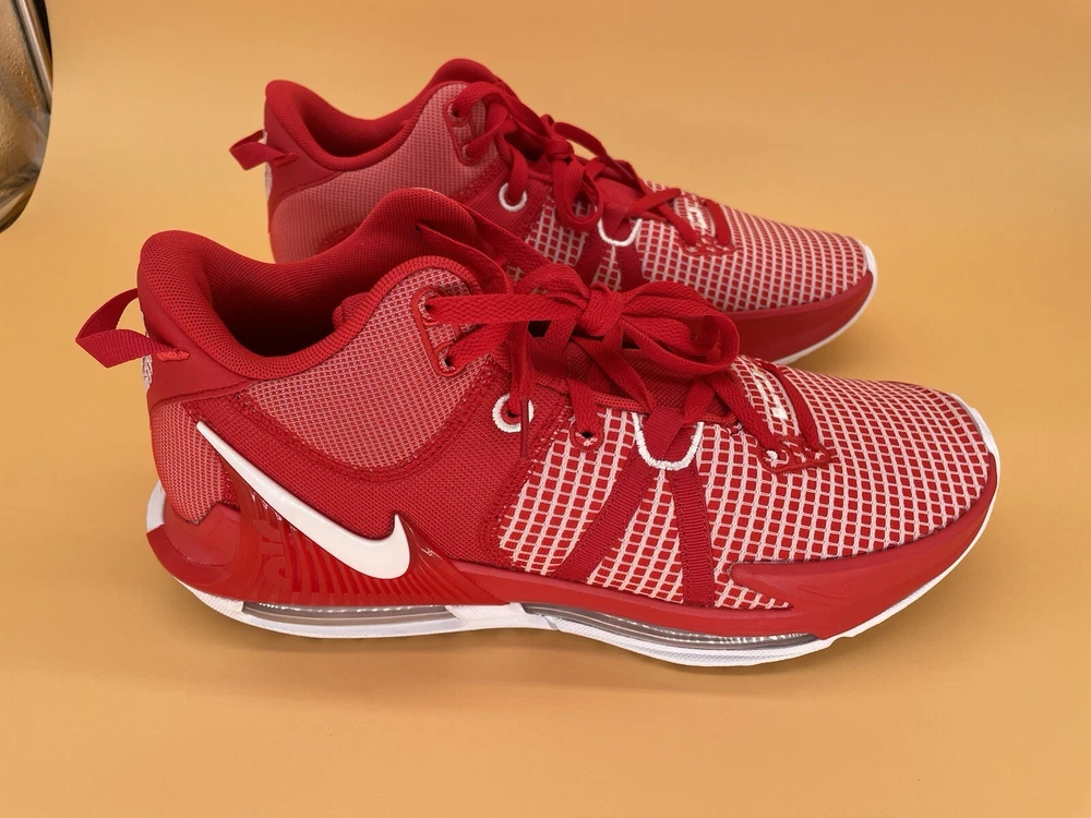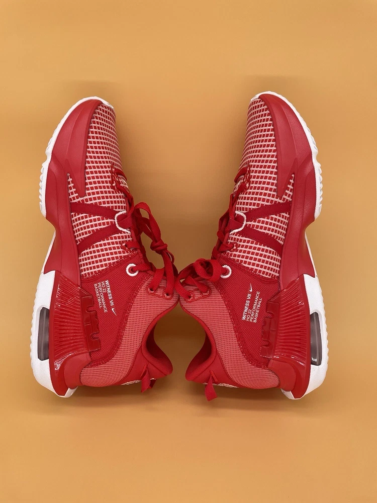 Boost your basketball game with these Brand new Nike LeBron Witness 7 Low sneakers without shoebox. Designed with comfort, performance, and breathability in mind, these shoes will help you dominate on the court. The red and white colorway, along with the low-top shoe shaft style, makes these sneakers the perfect addition to your activewear, casual, or workwear wardrobe. Crafted with synthetic upper material and a foam insole material, these shoes have a standard shoe width and come in UK Shoe Size 11, US Shoe Size 12, and EU Shoe Size 46. The rubber outsole material ensures durability and traction, while the lace-up closure provides a secure fit. Whether you're playing basketball or just looking for a stylish and functional pair of sneakers, the Nike LeBron Witness 7 Low is a must-have.