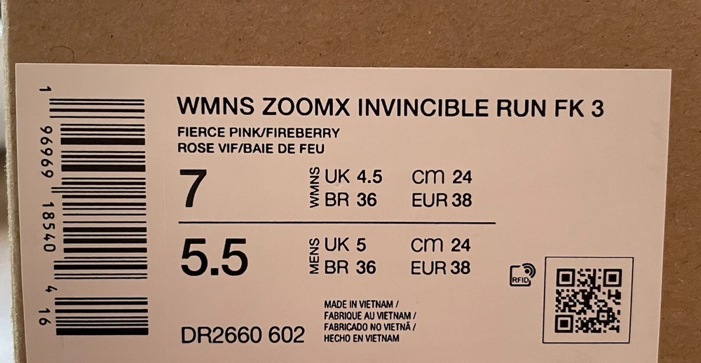 EU Shoe Size: 38 Shoe Shaft Style: Low Top Product Line: Nike Invincible UK Shoe Size: 4.5 Insole Material: Foam Country/Region of Manufacture: Vietnam Season: Fall, Spring, Summer US Shoe Size: 7 Accents: Logo Department: Women Occasion: Activewear, Casual Performance/Activity: Cross Training, Running & Jogging, Walking Model: Nike Invincible Run 3 Pierce Pink Upper Material: Synthetic Brand: Nike Vintage: No Closure: Lace Up Color: Pink Type: Athletic Style Code: Dr2660-602 Style: Sneaker Shoe Width: Standard Features: Breathable, Comfort, Performance Outsole Material: Rubber Pattern: Solid