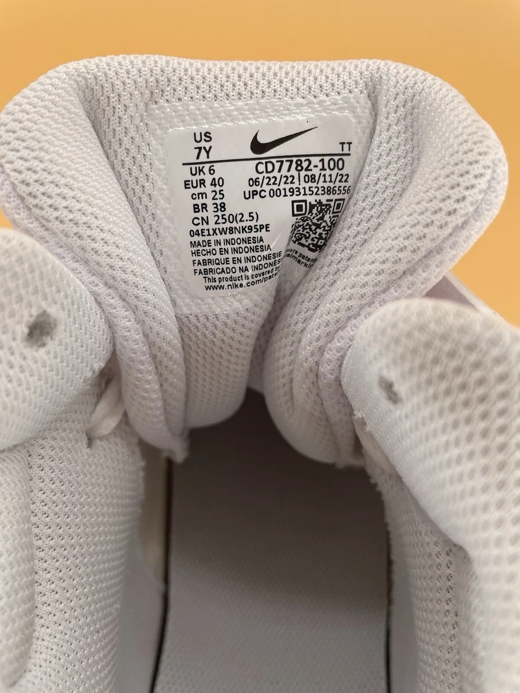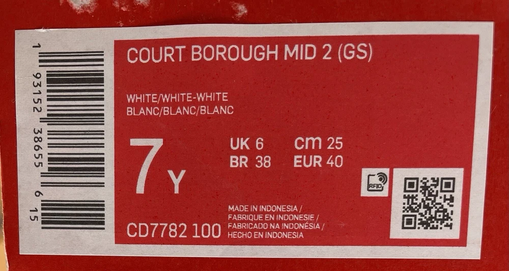 Level up your child's activewear game with these Brand New No Shoebox Nike Court Borough Mid 2 (GS) Triple White Basketball Sneakers. These lace-up with strap shoes feature a mid-top shoe shaft style and a standard shoe width, making them comfortable and breathable for walking and basketball activities. The rubber outsole material provides excellent traction, while the foam insole material adds extra comfort and support. The shoes are adorned with Nike's signature logo accents, making them a stylish addition to any outfit. Perfect for summer, fall, and spring, these sneakers are a must-have for any young athlete or casual wearer. Available in US Shoe Size 7 , these Nike Court Borough Mid 2 (GS) sneakers are a great investment for any child's wardrobe.
