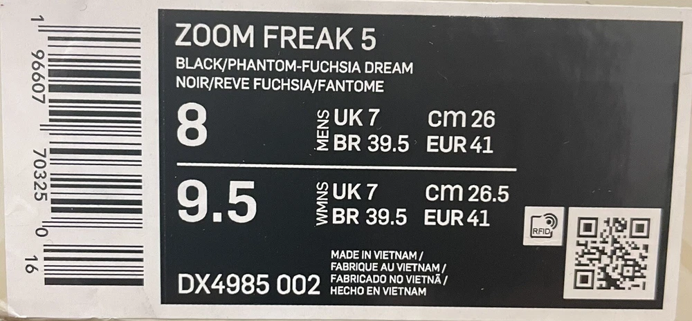 Brand new No shoebox Nike Zoom Freak 5 Giannis Antetokounmpo Basketball Sneakers Black/Phantom-Fuchsia Dream DX4985-002 Comfortable and stylish in and off the court for every athletic ballers dream! Tag in the shoes showing size 8 Men equivalent to Size 9.5