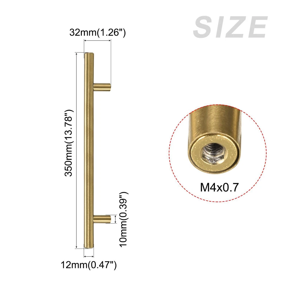Document APPLY TO - Suitable for doors of wardrobes, cabinets, closets and cupboards. For home, kitchen, bathroom, bedroom, living room, fitting room and other places.SPECIFICATION:Material: Stainless SteelSurface Treatment: ElectroplatedOverall Dimension: 350mm(L)x32mm(H)/13.78"x1.26"T Bar Diameter: 12mm/0.47"Handle Base Diameter: 10mm/0.39"Mounting Hole Size: M4(D)x0.7mm(P)Mounting Hole Center Distance: 224mm/8.82"QUANTITY INCLUDED - 1 x T Bar Pull Handle; 2 x M4*25mm Screw; 2 x M4*45mm ScrewADVANTAGE - The pull handle is made of stainless steel with electroplated finish, smooth surface, hollow and lightweight yet strong and durable.Note: Please according to the thickness and width of your drawer to choose the proper size handle. T Bar Pull Handle 5'' Hole Center Distance, 0.39'' Dia 2Pcs,Stainless Steel Gold APPLY TO - Suitable for doors of wardrobes, cabinets, closets and cupboards. For home, kitchen, bathroom, bedroom, living room, fitting room and other places. SPECIFICATION: Material: Stainless Steel Surface Treatment: Electroplated Overall Dimension: 350mm(L)x32mm(H)/13.78"x1.26" T Bar Diameter: 12mm/0.47" Handle Base Diameter: 10mm/0.39" Mounting Hole Size: M4(D)x0.7mm(P) Mounting Hole Center Distance: 224mm/8.82" QUANTITY INCLUDED - 1 x T Bar Pull Handle; 2 x M4*25mm Screw; 2 x M4*45mm Screw ADVANTAGE - The pull handle is made of stainless steel with electroplated finish, smooth surface, hollow and lightweight yet strong and durable. Note: Please according to the thickness and width of your drawer to choose the proper size handle. Hot Item Payment 1.We accept eBay payment . 2.Payment must be received within 7 business days of auction closing. Shipping 1.We ship to your eBay or Paypal address. Please make sure your eBay and Paypal address is correct before you pay. 2.Items will be shipped within 1-3 business day when we received payment. 3.Delivery time depends on destination and other factors. Description Policy T Bar Pull Handle 5'' Hole Center Distance, 0.39'' Dia 2Pcs,Stainless Steel Gold APPLY TO - Suitable for doors of wardrobes, cabinets, closets and cupboards. For home, kitchen, bathroom, bedroom, living room, fitting room and other places. SPECIFICATION: Material: Stainless Steel Surface Treatment: Electroplated Overall Dimension: 350mm(L)x32mm(H)/13.78"x1.26" T Bar Diameter: 12mm/0.47" Handle Base Diameter: 10mm/0.39" Mounting Hole Size: M4(D)x0.7mm(P) Mounting Hole Center Distance: 224mm/8.82" QUANTITY INCLUDED - 1 x T Bar Pull Handle; 2 x M4*25mm Screw; 2 x M4*45mm Screw ADVANTAGE - The pull handle is made of stainless steel with electroplated finish, smooth surface, hollow and lightweight yet strong and durable. Note: Please according to the thickness and width of your drawer to choose the proper size handle. Hot Item Payment 1.We accept eBay payment . 2.Payment must be received within 7 business days of auction closing. Shipping 1.We ship to your eBay or Paypal address. Please make sure your eBay and Paypal address is correct before you pay. 2.Items will be shipped within 1-3 business day when we received payment. 3.Delivery time depends on destination and other factors.