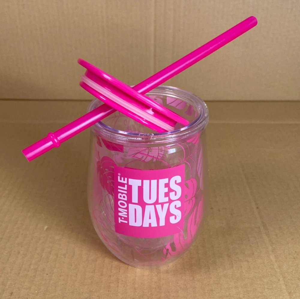T Mobile Tuesdays Tropical Floral Tumbler Cup With Lid And Straw T-Mobile Tuesdays Cup Tropical Tumbler Floral Designs Plastic Lid & Straw Included Has Minor Signs of Use Pre-Owned, Good Condition *Please Review All Pictures *Ask Questions Prior To Purchase *All Items Are Shipped As Pictured
