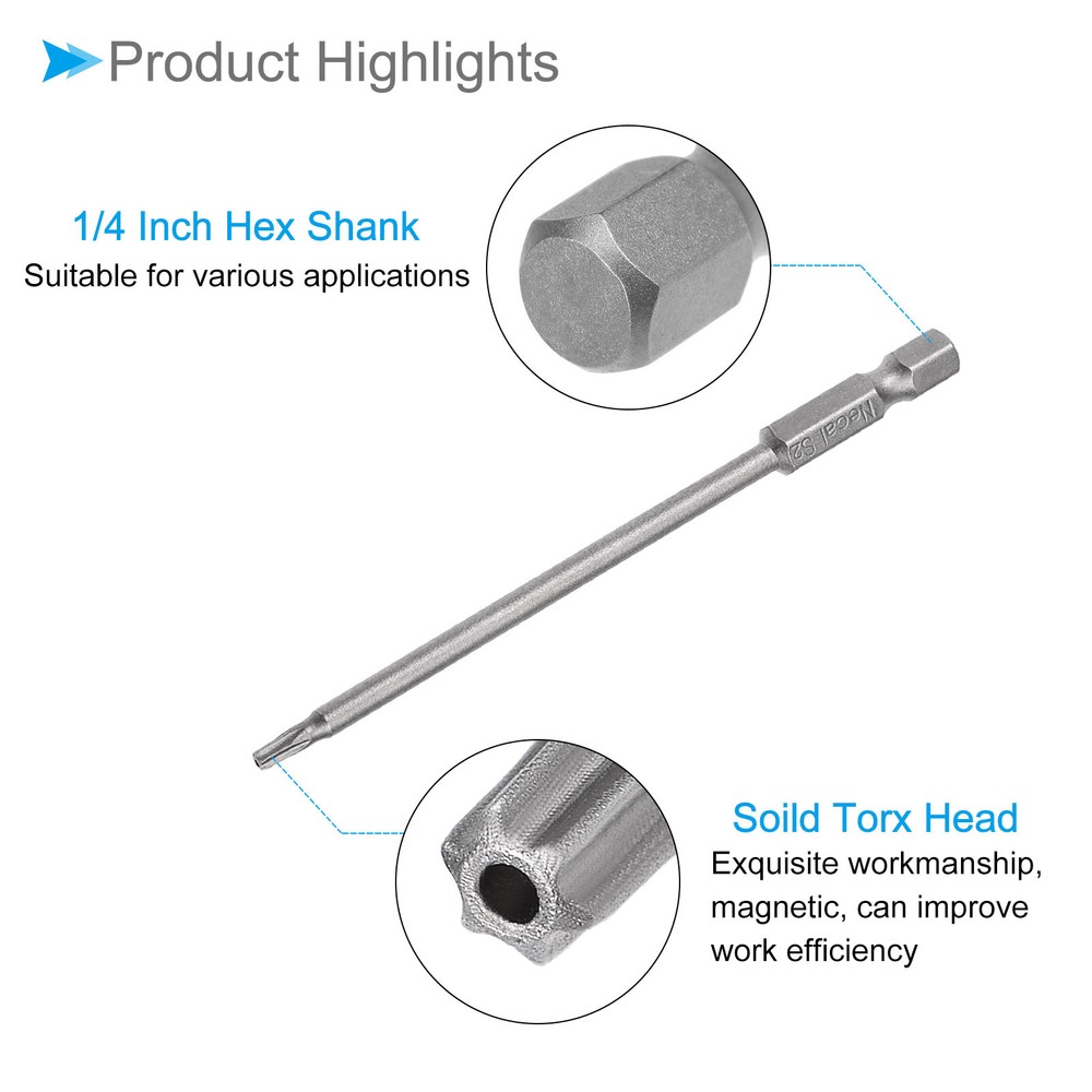 T10 Torx Screwdriver Bit Set 4 Inch 1/4 Hex Shank Magnetic 5 Pack