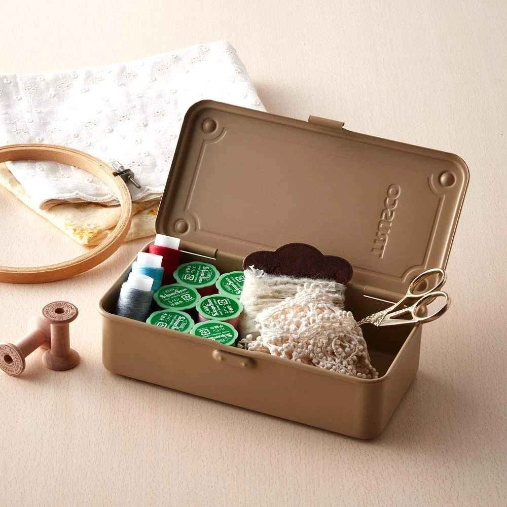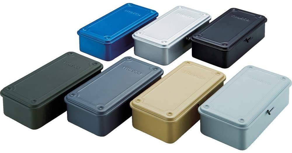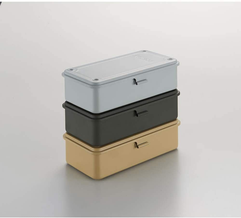 T-190DG Trunk-Style Tool Box Arsenal Gray All Traceable Shipping ●Color:Arsenal Gray●Hook:None●Anti-slipping Groove:Yes●Outer Dimension (mm) W x D x H:203 x 109 x 56.0●Effective Inner Dimension (mm) W x D x H:186 x 88 x 41●Cylinder Lock (sold separately):Cannot be installed All packages and attached documents are Japanese specifications