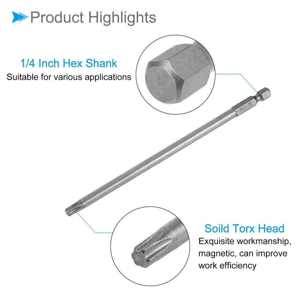 Document Attributes: *Screwdriver Bit Type: T30*Total Length: 150mm / 6 inch*Surface Treatment: Sandblasted*Material: S2What Is Included:* 1 Pieces x Torx Head Screwdriver BitsApplications & Features: -The screwdriver bit is made of S2 steel, which is wear-resistant and impact-resistant, with a hardness of up to 58HRC, and has been sandblasted and surface treated for durability.-These torx screwdriver bits feature a magnetic design that allows them to easily attract and hold screws. This feature ensures convenient installation by securely holding the screw in place before and after fastening, preventing accidental drops or misalignment.Useful Tips:-When using the torx head screwdriver bit, ensure a proper fit with the screw head to prevent stripping or damage. Apply appropriate pressure and torque to avoid over-tightening or under-tightening. Inspect the bit regularly for any signs of wear or deformation and replace if necessary. T30 Torx Head Screwdriver Bit 6" L 1/4 " Hex Shank Steel Screw Driver 1-Piece Attributes: *Screwdriver Bit Type: T30 *Total Length: 150mm / 6 inch *Surface Treatment: Sandblasted *Material: S2 What Is Included: * 1 Pieces x Torx Head Screwdriver Bits Applications & Features: -The screwdriver bit is made of S2 steel, which is wear-resistant and impact-resistant, with a hardness of up to 58HRC, and has been sandblasted and surface treated for durability. -These torx screwdriver bits feature a magnetic design that allows them to easily attract and hold screws. This feature ensures convenient installation by securely holding the screw in place before and after fastening, preventing accidental drops or misalignment. Useful Tips: -When using the torx head screwdriver bit, ensure a proper fit with the screw head to prevent stripping or damage. Apply appropriate pressure and torque to avoid over-tightening or under-tightening. Inspect the bit regularly for any signs of wear or deformation and replace if necessary. Hot Item Payment 1.We accept eBay payment . 2.Payment must be received within 7 business days of auction closing. Shipping 1.We ship to your eBay or Paypal address. Please make sure your eBay and Paypal address is correct before you pay. 2.Items will be shipped within 1-3 business day when we received payment. 3.Delivery time depends on destination and other factors. Description Policy T30 Torx Head Screwdriver Bit 6" L 1/4 " Hex Shank Steel Screw Driver 1-Piece Attributes: *Screwdriver Bit Type: T30 *Total Length: 150mm / 6 inch *Surface Treatment: Sandblasted *Material: S2 What Is Included: * 1 Pieces x Torx Head Screwdriver Bits Applications & Features: -The screwdriver bit is made of S2 steel, which is wear-resistant and impact-resistant, with a hardness of up to 58HRC, and has been sandblasted and surface treated for durability. -These torx screwdriver bits feature a magnetic design that allows them to easily attract and hold screws. This feature ensures convenient installation by securely holding the screw in place before and after fastening, preventing accidental drops or misalignment. Useful Tips: -When using the torx head screwdriver bit, ensure a proper fit with the screw head to prevent stripping or damage. Apply appropriate pressure and torque to avoid over-tightening or under-tightening. Inspect the bit regularly for any signs of wear or deformation and replace if necessary. Hot Item Payment 1.We accept eBay payment . 2.Payment must be received within 7 business days of auction closing. Shipping 1.We ship to your eBay or Paypal address. Please make sure your eBay and Paypal address is correct before you pay. 2.Items will be shipped within 1-3 business day when we received payment. 3.Delivery time depends on destination and other factors.