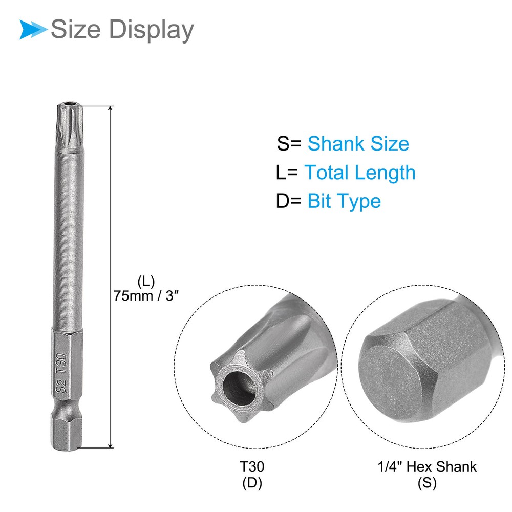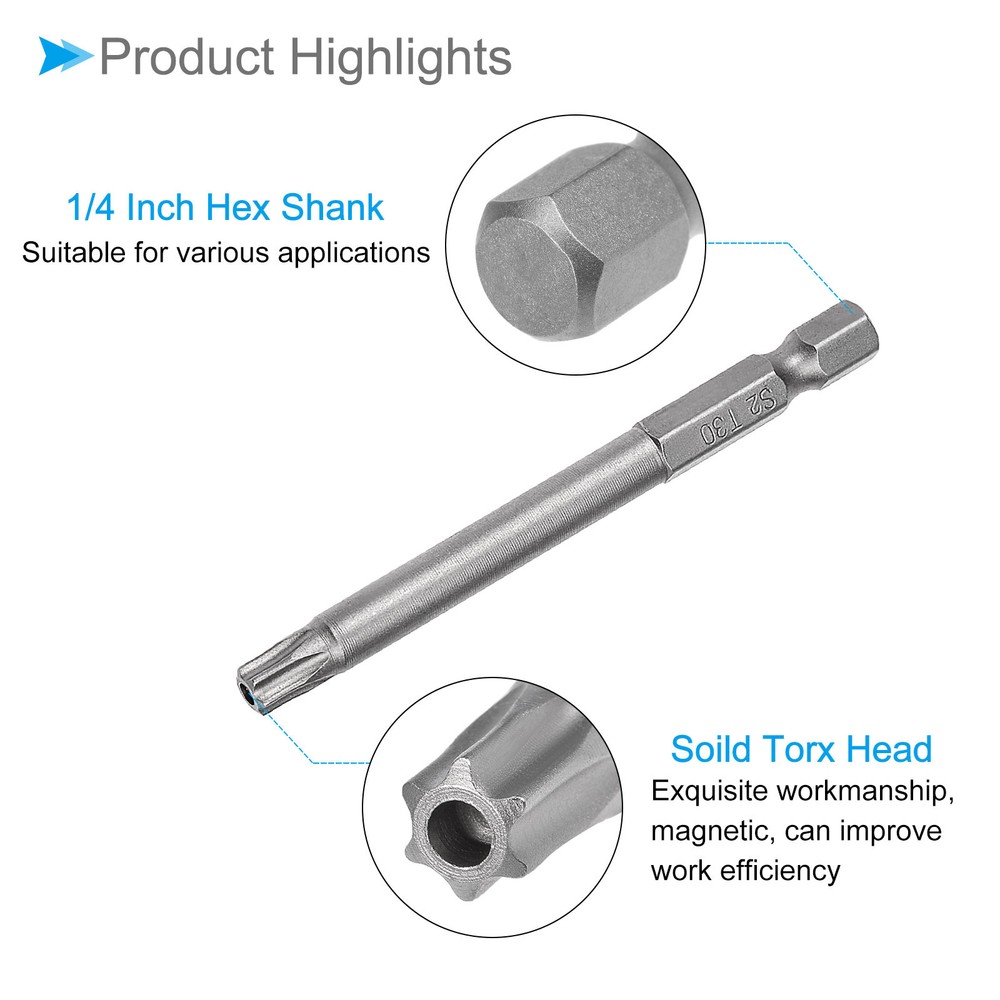 Document Attributes: *Screwdriver Bit Type: T30*Total Length: 75mm / 3 inch*Surface Treatment: Sandblasted*Material: S2What Is Included:* 5 Pieces x Torx Head Screwdriver BitsApplications & Features: -The screwdriver bit is made of S2 steel, which is wear-resistant and impact-resistant, with a hardness of up to 58HRC, and has been sandblasted and surface treated for durability.-These torx screwdriver bits feature a magnetic design that allows them to easily attract and hold screws. This feature ensures convenient installation by securely holding the screw in place before and after fastening, preventing accidental drops or misalignment.Useful Tips:-When using the torx head screwdriver bit, ensure a proper fit with the screw head to prevent stripping or damage. Apply appropriate pressure and torque to avoid over-tightening or under-tightening. Inspect the bit regularly for any signs of wear or deformation and replace if necessary. T30 Torx Head Screwdriver Bit 3" L 1/4 " Hex Shank Magnetic Star Drill 5Pcs Attributes: *Screwdriver Bit Type: T30 *Total Length: 75mm / 3 inch *Surface Treatment: Sandblasted *Material: S2 What Is Included: * 5 Pieces x Torx Head Screwdriver Bits Applications & Features: -The screwdriver bit is made of S2 steel, which is wear-resistant and impact-resistant, with a hardness of up to 58HRC, and has been sandblasted and surface treated for durability. -These torx screwdriver bits feature a magnetic design that allows them to easily attract and hold screws. This feature ensures convenient installation by securely holding the screw in place before and after fastening, preventing accidental drops or misalignment. Useful Tips: -When using the torx head screwdriver bit, ensure a proper fit with the screw head to prevent stripping or damage. Apply appropriate pressure and torque to avoid over-tightening or under-tightening. Inspect the bit regularly for any signs of wear or deformation and replace if necessary. Hot Item Payment 1.We accept eBay payment . 2.Payment must be received within 7 business days of auction closing. Shipping 1.We ship to your eBay or Paypal address. Please make sure your eBay and Paypal address is correct before you pay. 2.Items will be shipped within 1-3 business day when we received payment. 3.Delivery time depends on destination and other factors. Description Policy T30 Torx Head Screwdriver Bit 3" L 1/4 " Hex Shank Magnetic Star Drill 5Pcs Attributes: *Screwdriver Bit Type: T30 *Total Length: 75mm / 3 inch *Surface Treatment: Sandblasted *Material: S2 What Is Included: * 5 Pieces x Torx Head Screwdriver Bits Applications & Features: -The screwdriver bit is made of S2 steel, which is wear-resistant and impact-resistant, with a hardness of up to 58HRC, and has been sandblasted and surface treated for durability. -These torx screwdriver bits feature a magnetic design that allows them to easily attract and hold screws. This feature ensures convenient installation by securely holding the screw in place before and after fastening, preventing accidental drops or misalignment. Useful Tips: -When using the torx head screwdriver bit, ensure a proper fit with the screw head to prevent stripping or damage. Apply appropriate pressure and torque to avoid over-tightening or under-tightening. Inspect the bit regularly for any signs of wear or deformation and replace if necessary. Hot Item Payment 1.We accept eBay payment . 2.Payment must be received within 7 business days of auction closing. Shipping 1.We ship to your eBay or Paypal address. Please make sure your eBay and Paypal address is correct before you pay. 2.Items will be shipped within 1-3 business day when we received payment. 3.Delivery time depends on destination and other factors.