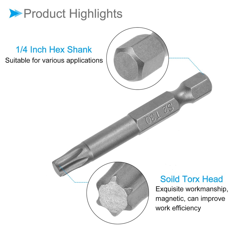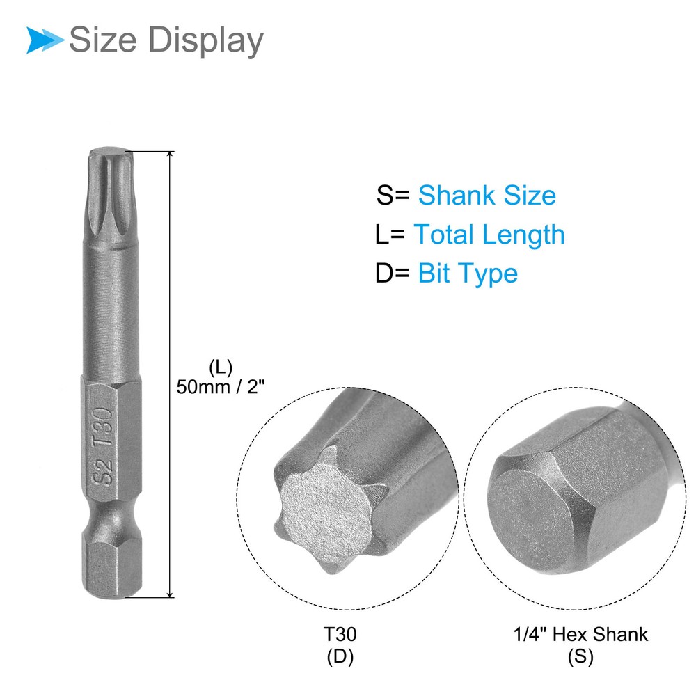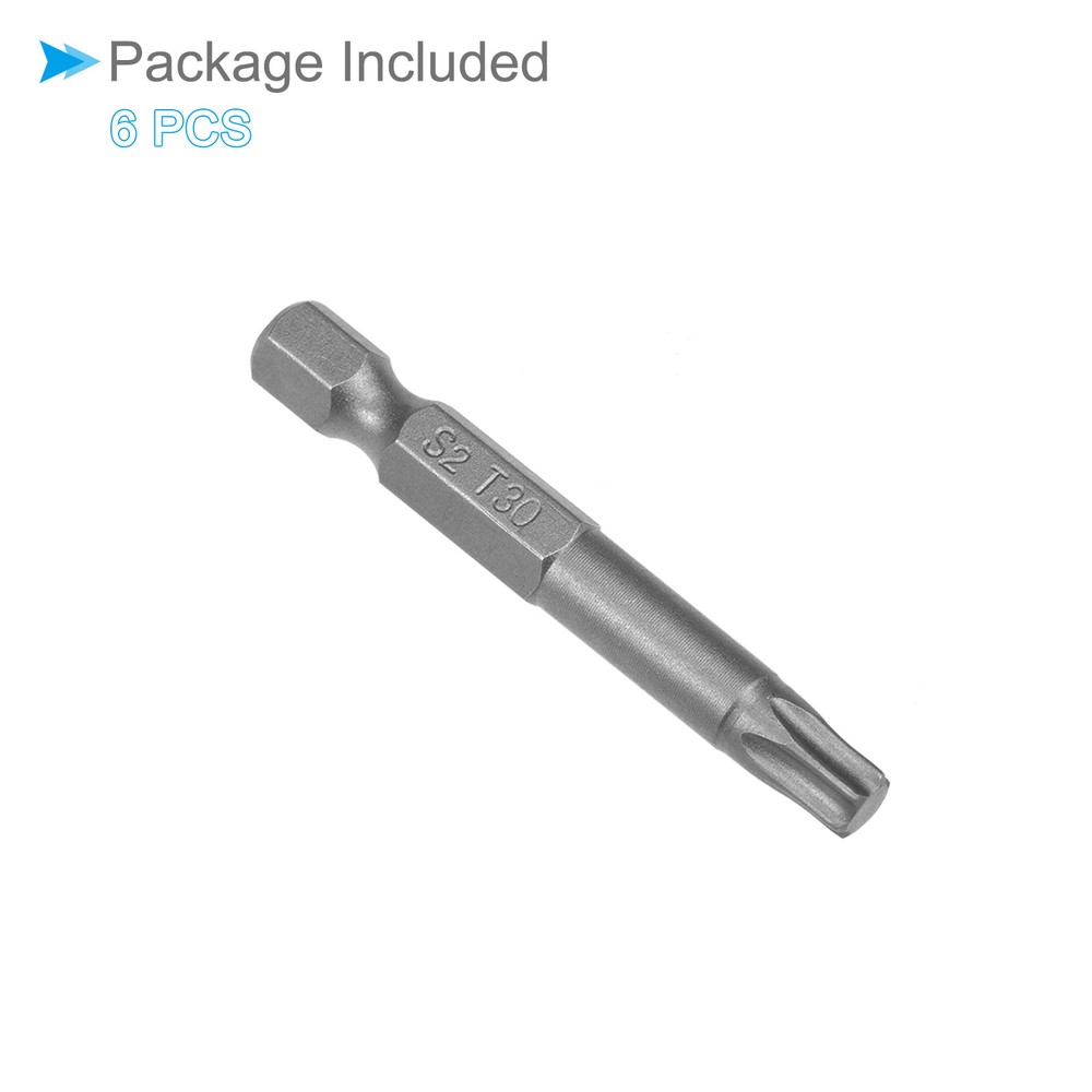 T30 Torx Screwdriver Bit Set 6Pcs 2 Inch Steel 1/4 Hex Shank