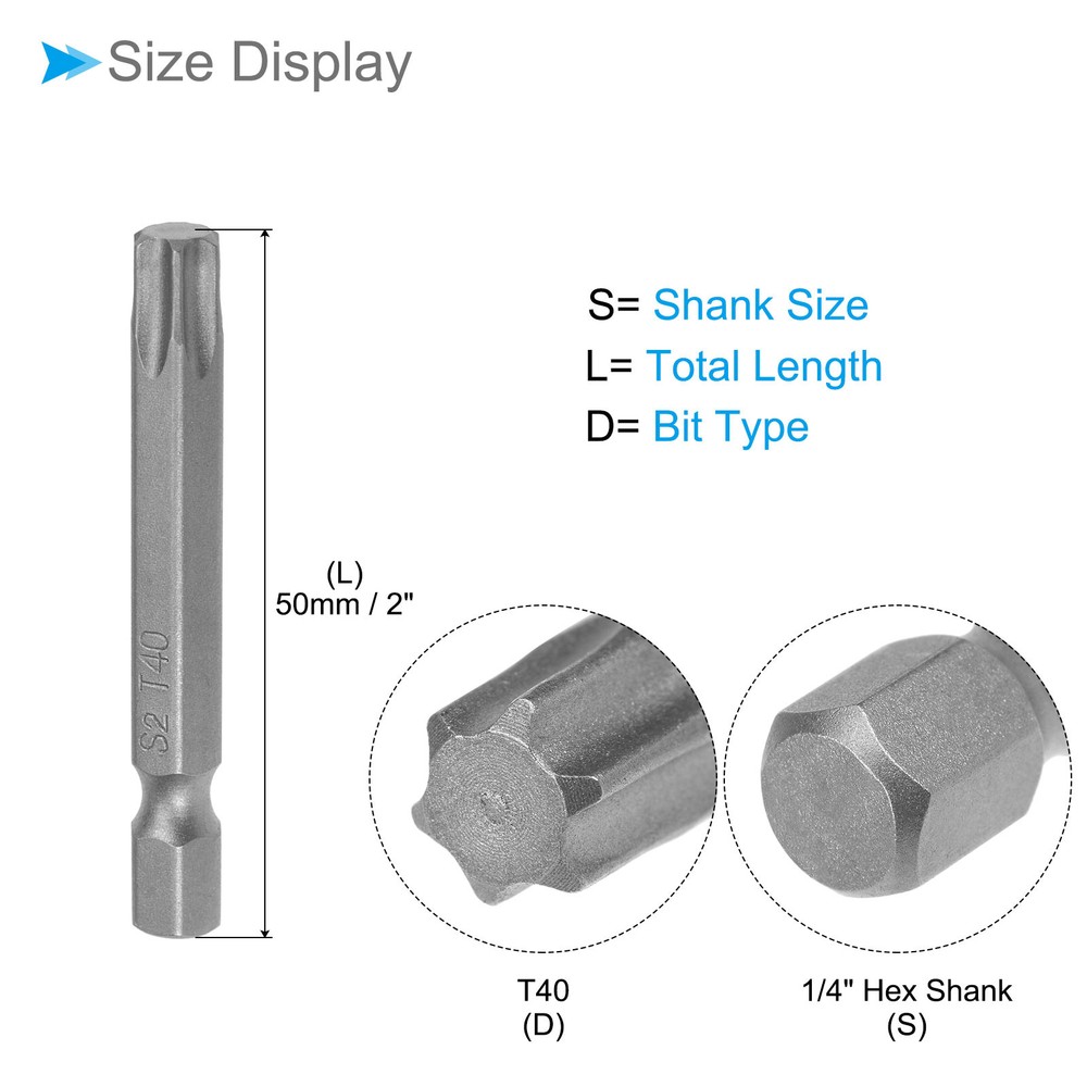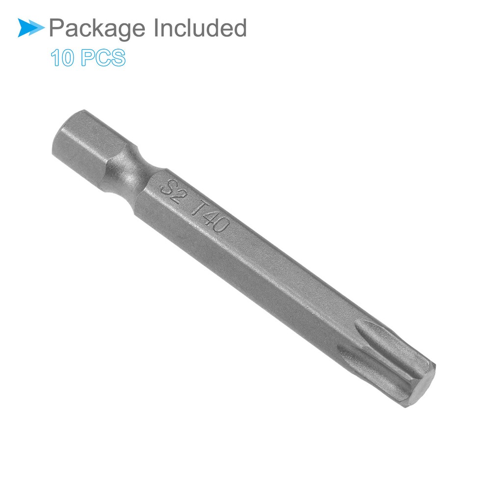 T40 Torx Head Screwdriver Bit 2" L 1/4 " Hex Shank Steel Screw Driver 10Pcs