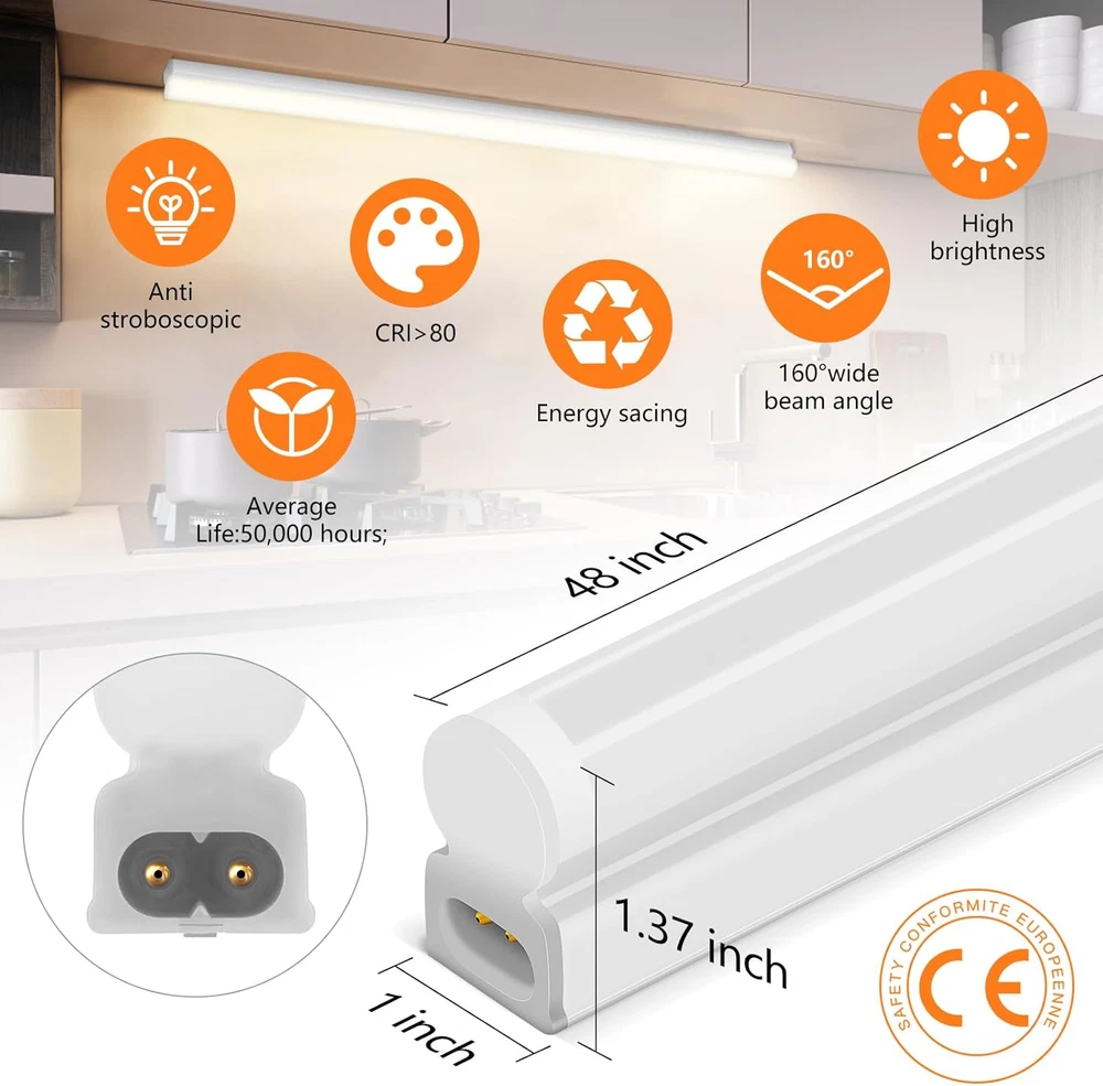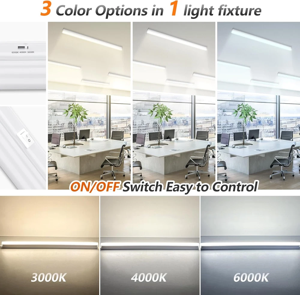 Store New Arrivals Add to Favorite View Feedback Contact T5 LED Shop Lights 4FT, 18W 2000LM 3CCT LED Integrated Single Fixture, Linkable Ceiling Light, Corded Electric with On/Off Switch, for Workbench Basement Garage, 4-Pack Description Item model number 4FT-3CCT Light Source Type LED Style Modern Number of Items 4 Power Source Corded Electric Number of Light Sources 4 Country of Origin China Lighting Method Downlight Unit Count 4.0 Count Room Type Storage Room Product Dimensions 47.2"L x 1.18"W x 1.18"H Material Polycarbonate Installation Type Flush Mount Model Name 4FT-3CCT Included Components Bulb included, Mounting Hardware, Connector Wire, power cord with on/off switch Fixture Type Non Removable Brightness 2000 Lumen Control Method App Batteries Required? No Item Weight 2.7 pounds Light fixture form Close to Ceiling Special Features Energy Efficient, Adjustable Color Temperature Special Feature Energy Efficient, Adjustable Color Temperature Part Number 4ft-3cct Mounting Type Ceiling Mount, Wall Mount Color White Wattage 18 watts Size 4FT-3CCT-4PCS 3CCT (3000K/4000K/6000K): This 4FT 18W T5 integrated light offers 3CCT selectable color temperatures, allowing you to choose from warm, natural, or cool lighting to suit any ambiance or task. Perfect for creating a cozy atmosphere in your home or garage. Easy Installation: With its plug-and-play design, this batten light is hassle-free to set up. Simply connect it to a power source, and you're ready to go! No complicated wiring is required. Experience convenient and efficient lighting in minutes. Wide Application: This under-cabinet light is suitable for a wide range of applications. Whether you need task lighting in your kitchen, accent lighting in your living room, or display lighting in your store. Linkable: The linkable feature of this T5 integrated light allows you to connect multiple units together, providing you with a continuous and uniform lighting solution for larger spaces. Package Included: 4pcs T5 4ft led workshop lights,2pcs 70.8inches power cords with ON/OFF switch,4pcs pigtail wire,3pcs 19.6inches connector cables,4pcs Small connectors,4pcs Installation accessories T5 Integrated Tube Lights 4Pack ABOUT US We offer the best prices around on high quality products. Our E-store includes media such as books, movies, music and games while offering electronics, toys, sporting apparel, clothing, tools, general home, garden items and more. SHIPPING We are always working hard to ensure your package arrives as soon as possible. Please understand that some factors like weather, high postal traffic, and the performance of shipping companies are outside of our control. We offer free shipping to the lower 48 states and ship within 2 business days of payment, usually sooner. We do not accept P.O. Boxes. Please provide a physical address. For shipping outside of the continental USA, we only use eBay's Global Shipping Program.The item is shipped to KY and then sent to the rest of the world. International customers are responsible for all duties and taxes. Continue to check out in order to calculate costs for shipping the item to your country. Messages regarding eBay's Global Shipping Program MUST be directed at eBay EXCLUSIVELY. RETURNS We offer a 30-Day Return Policy on items which you are not completely satisfied with. You have the option for a full-refund or an exchange of the item. No returns are available on items shipped outside of the USA. PAYMENT We accept PayPal. CONTACT US This page content is yet to come Please ad us to your favorite seller and visit again later Thank You CUSTOMER SATISFACTION We try our very best to make sure every customer is completely satisfied. If there's a problem, message us! We're happy to help. WE ACCEPT Copyright © 2021 AutoDS. | All Rights Reserved