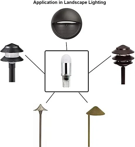 Important Note: This 12V wedge base LED bulb could not with electronic transformer in under counter or cabinet lighting, which might cause flickers. Please kindly check before purchasing. Tips: these LED bulbs are some longer than some old incandescent/halogen wedge bulbs. Please check the measurement on the picture to make sure they are suitable for your fixture. For landscape lighting, the LED bulb is used to replace the T3 T5 T10 921 912 904 194 miniature wedge bulbs. For RV lighting, the LED bulb is used for T10 wedge bulbs , NOT for the automotive T5 Instrument Cluster Gauge Dashboard Indicator lamps . The base is miniature wedge base. Parameters Wattage: 1Watt Lumen output: 100lm Color Temperature: soft warm white 2700K-3000K Color Rendering Index: 82 Low voltage working system: 12AC/DC Base type: Miniature Wedge base Dimmable: No Dimensions: 0.47"(W) x 1.48"(L) Working temperature: -35 to +55°C Long lifespan: Over 25,000 hours Wide applications: landscape Lighting pathway lighting fixtures, step lights etc. Cross Reference: T3 T5 T10 921 912 904 194 1W T5 T10 Wedge Base LED Bulb. It is an ideal bulb for some light fixtures that do not need too much brightness. Wide applications: it can fit numerous 12V low voltage outdoor landscape lighting, step lights, deck lights, driveway lights, path lights, gazebo lights, paver lights and RV Tailer Lighting(for dome lights only). Weather-proof design. It is designed with plastic cover to protect it from moisture and dusts. Energy Saving and Nice Color. 100 Lumen output in 1 Watts. It is equivalent to 7W/11W wedge base bulbs. It produces nice soft warm white color. Easy plug-and-play installation.Note: please check the measurement before purchase.The LED bulb is some longer than some traditional 921, 912, 904 and 194 bulbs. 100% Satisfaction . 30-Day Money back and 1 Year Hassle-Free . If you meet any problem, please feel free to write us an , we would make it right for you quickly.