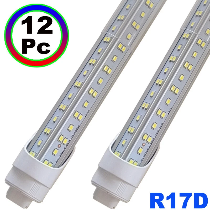 FAST DELIVERY - Ship from New Jersey or Los Angeles Warehouse via FedEx , 3-7 Days Delivered Your Door . SCIENTIFIC DESIGN - 8Ft LED Shop Lights Fixture is Made of 6500K Cold White SMD2835 LED Chip ,Plastic Clear Cover , Aluminum Bracket Housing ,and AC85-277V Constant Current Driver . It can work in -68F to 120F Temperature Conditions EASY INSTALLATION - The Integrated Tube Fixture Can be Install on Wall or Ceiling ,Easily Replace Traditional Fluorescent Tube Bulb . Plug and Play , Free Accessories (Power Cords, Connector , Extension Cords , Clip and Screw ) Come with Tube Lights Together WIDE APPLICATION - Linkable 8Ft Bulbs Widely Used in Garage Ceiling , Barbershop , Schools, Hospitals Basement , Factory Warehouses , Supermarkets Cooler Door , Offices, Shops,Hotels, etc T8 8Ft R17D HO Led Tube Light 8 FOOT Led Bulbs 8Foot 144W 8'Led Shop Light 6500K 【Rotate Cap & Swivel End】 Easy Adjust rotated Lighting Direction within 180 degree after Installation 【No RF & FM Interference】LED Driver have passed Electromagnetic Magnetic Compatibility EMC tests,No cause EMI ,No longer subject to any RF & FM jamming. Never interfering with the signal of your garage roller shutter door,No make noise when you listen radio 【Easy to Install】Just simply bypass the ballast and connection AC85-277V AC power . Not compatible with single-ended powered sockets 【Wide Application】 - 8Ft 144W V Shaped R17D HO LED Bulb fitted to replace traditional F96T12 T8 T10 T12 fluorescent bulbs. Widely used in Garage,supermarkets, offices , convenience stores , 【High Output】8Ft 144W 18000LM R17D 6500K Cold White Color