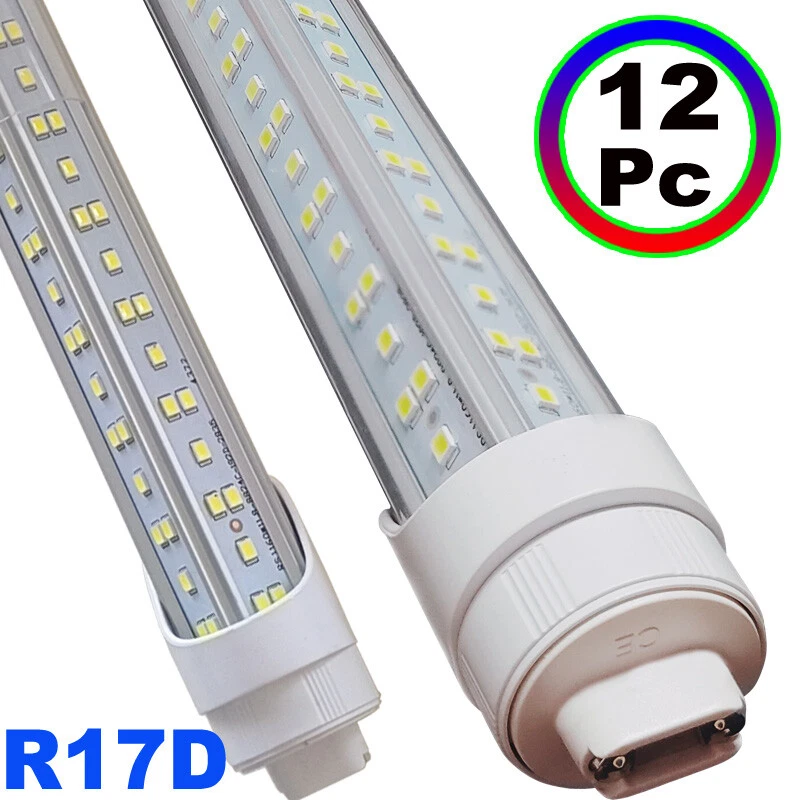 FAST DELIVERY - Ship from New Jersey or Los Angeles Warehouse via FedEx , 3-7 Days Delivered Your Door . SCIENTIFIC DESIGN - 8Ft LED Shop Lights Fixture is Made of 6500K Cold White SMD2835 LED Chip ,Plastic Clear Cover , Aluminum Bracket Housing ,and AC85-277V Constant Current Driver . It can work in -68F to 120F Temperature Conditions EASY INSTALLATION - The Integrated Tube Fixture Can be Install on Wall or Ceiling ,Easily Replace Traditional Fluorescent Tube Bulb . Plug and Play , Free Accessories (Power Cords, Connector , Extension Cords , Clip and Screw ) Come with Tube Lights Together WIDE APPLICATION - Linkable 8Ft Bulbs Widely Used in Garage Ceiling , Barbershop , Schools, Hospitals Basement , Factory Warehouses , Supermarkets Cooler Door , Offices, Shops,Hotels, etc T8 8Ft R17D HO Led Tube Light Bulbs 144W V Shaped 8' Led Shop Light 6500K 12Pcs 【Rotate Cap & Swivel End】 Easy Adjust rotated Lighting Direction within 180 degree after Installation 【No RF & FM Interference】LED Driver have passed Electromagnetic Magnetic Compatibility EMC tests,No cause EMI ,No longer subject to any RF & FM jamming. Never interfering with the signal of your garage roller shutter door,No make noise when you listen radio 【Easy to Install】Just simply bypass the ballast and connection AC85-277V AC power . Not compatible with single-ended powered sockets 【Wide Application】 - 8Ft 144W V Shaped R17D HO LED Bulb fitted to replace traditional F96T12 T8 T10 T12 fluorescent bulbs. Widely used in Garage,supermarkets, offices , convenience stores , 【High Output】8Ft 144W 18000LM R17D 6500K Cold White Color