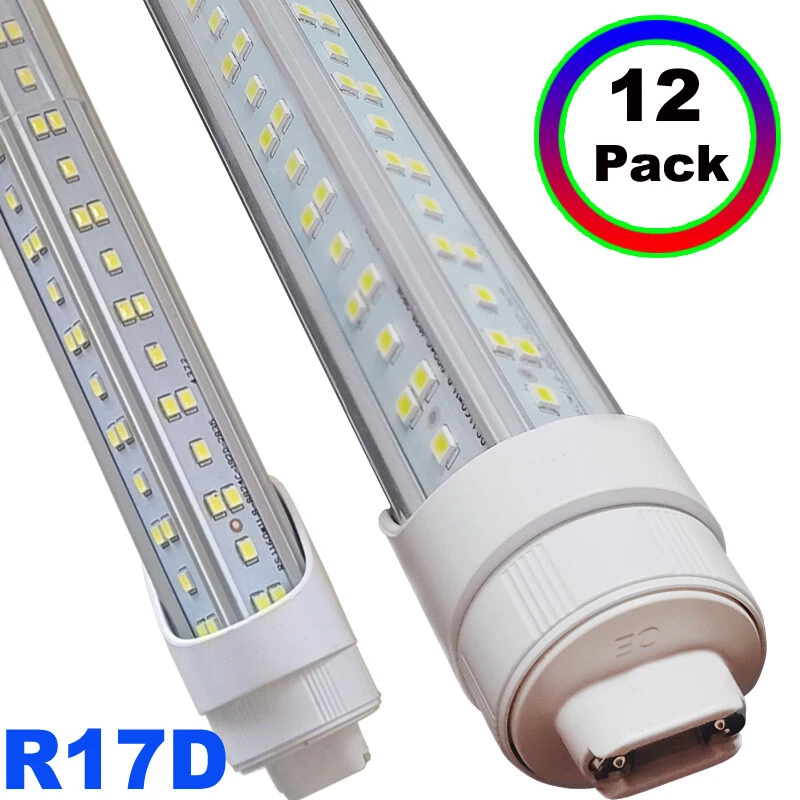 FAST DELIVERY - Ship from New Jersey or Los Angeles Warehouse via FedEx , 3-7 Days Delivered Your Door . SCIENTIFIC DESIGN - 8Ft LED Shop Lights Fixture is Made of 6500K Cold White SMD2835 LED Chip ,Plastic Clear Cover , Aluminum Bracket Housing ,and AC85-277V Constant Current Driver . It can work in -68F to 120F Temperature Conditions EASY INSTALLATION - The Integrated Tube Fixture Can be Install on Wall or Ceiling ,Easily Replace Traditional Fluorescent Tube Bulb . Plug and Play , Free Accessories (Power Cords, Connector , Extension Cords , Clip and Screw ) Come with Tube Lights Together WIDE APPLICATION - Linkable 8Ft Bulbs Widely Used in Garage Ceiling , Barbershop , Schools, Hospitals Basement , Factory Warehouses , Supermarkets Cooler Door , Offices, Shops,Hotels, etc T8 8Ft R17D HO Led Tube Light Bulbs 6500K 144W Rotatable 8Foot Led Shop Lights 【Rotate Cap & Swivel End】 Easy Adjust rotated Lighting Direction within 180 degree after Installation 【No RF & FM Interference】LED Driver have passed Electromagnetic Magnetic Compatibility EMC tests,No cause EMI ,No longer subject to any RF & FM jamming. Never interfering with the signal of your garage roller shutter door,No make noise when you listen radio 【Easy to Install】Just simply bypass the ballast and connection AC85-277V AC power . Not compatible with single-ended powered sockets 【Wide Application】 - 8Ft 144W V Shaped R17D HO LED Bulb fitted to replace traditional F96T12 T8 T10 T12 fluorescent bulbs. Widely used in Garage,supermarkets, offices , convenience stores , 【High Output】8Ft 144W 18000LM R17D 6500K Cold White Color